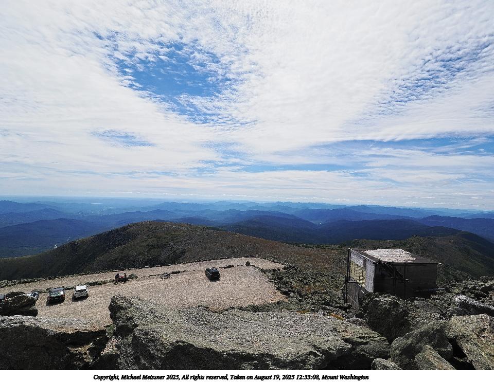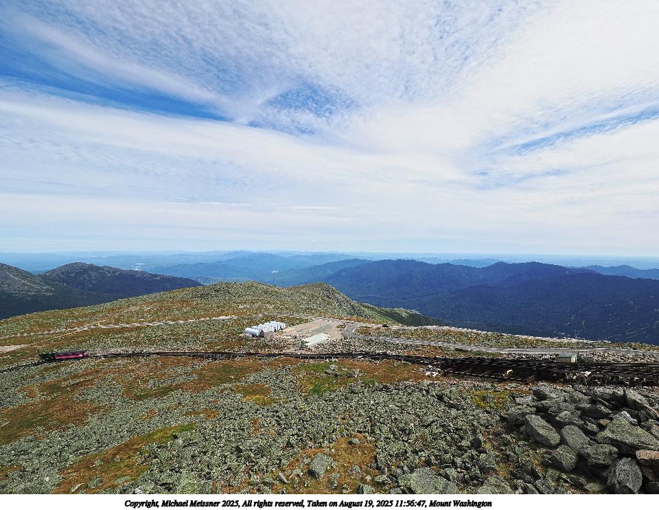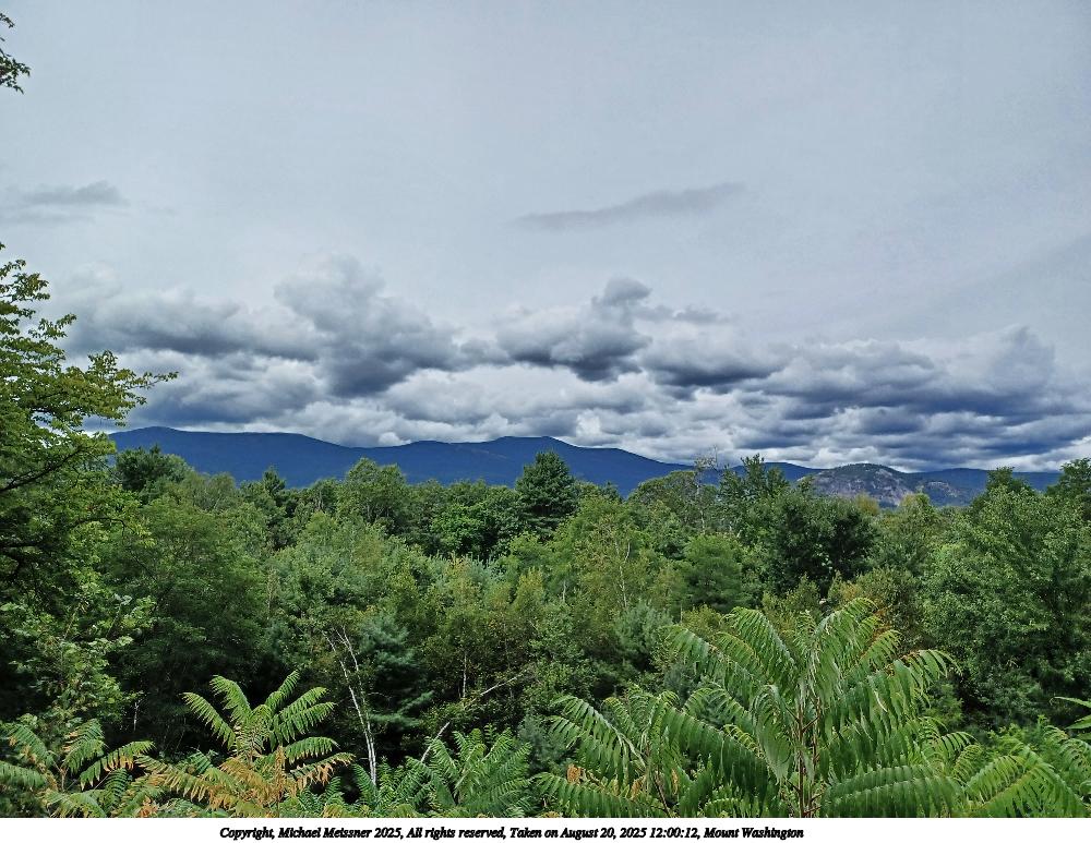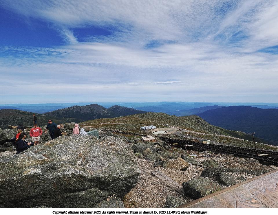 Picture #83: Mount Washington #16 960x743, 94,216 bytes (93K), (html file) Copyright, Michael Meissner 2025, All rights reserved OM OM1 camera with Olympus-m43 12-200mm f/3.5-6.3 lens f/11.0, ISO 200, 1/500 sec, 17.0mm, auto mode, vivid color, matrix metering, digital zoom x2, IS Auto 35mm equivalent focal length 68.0mm, digital zoom x2 Programs used: crop, raw therapee Taken by Michael Meissner on August 19, 2025 12:32:22 Last modified on August 23, 2025 at 17:37 This picture is one of my favorites. |
