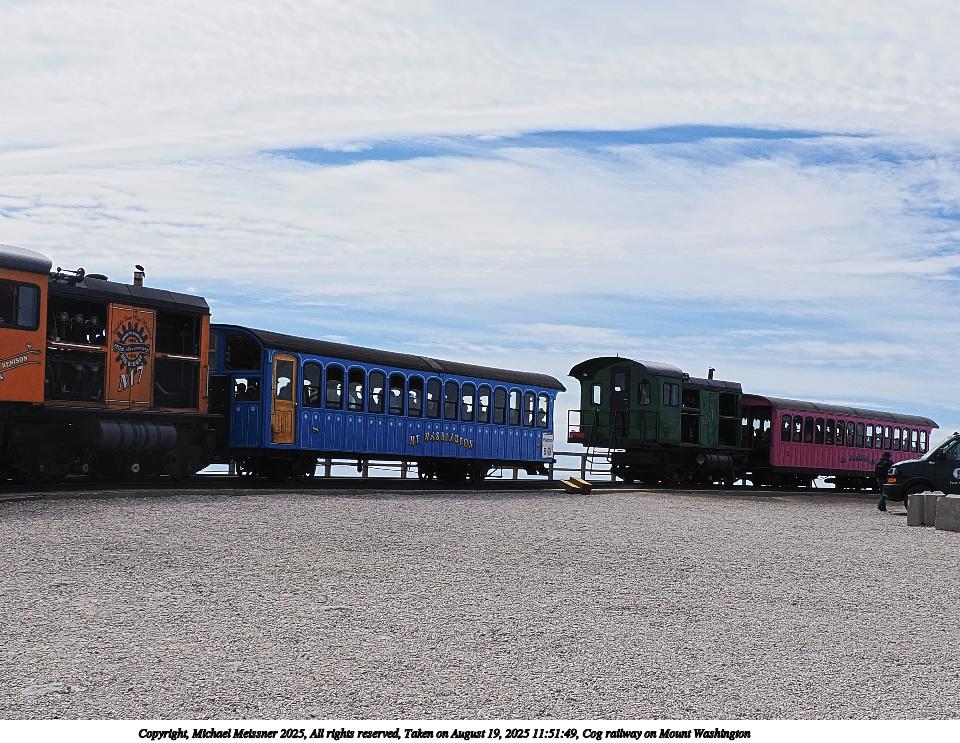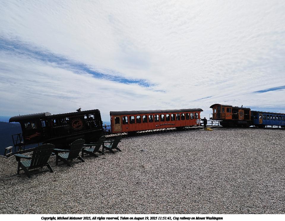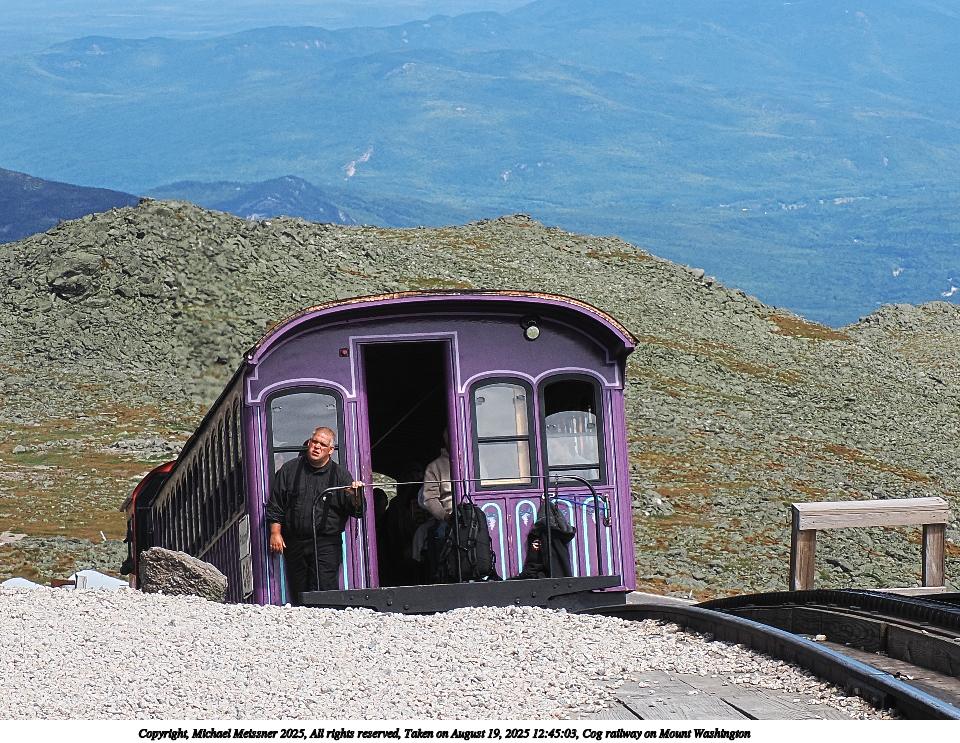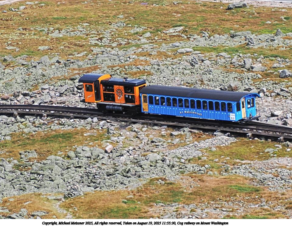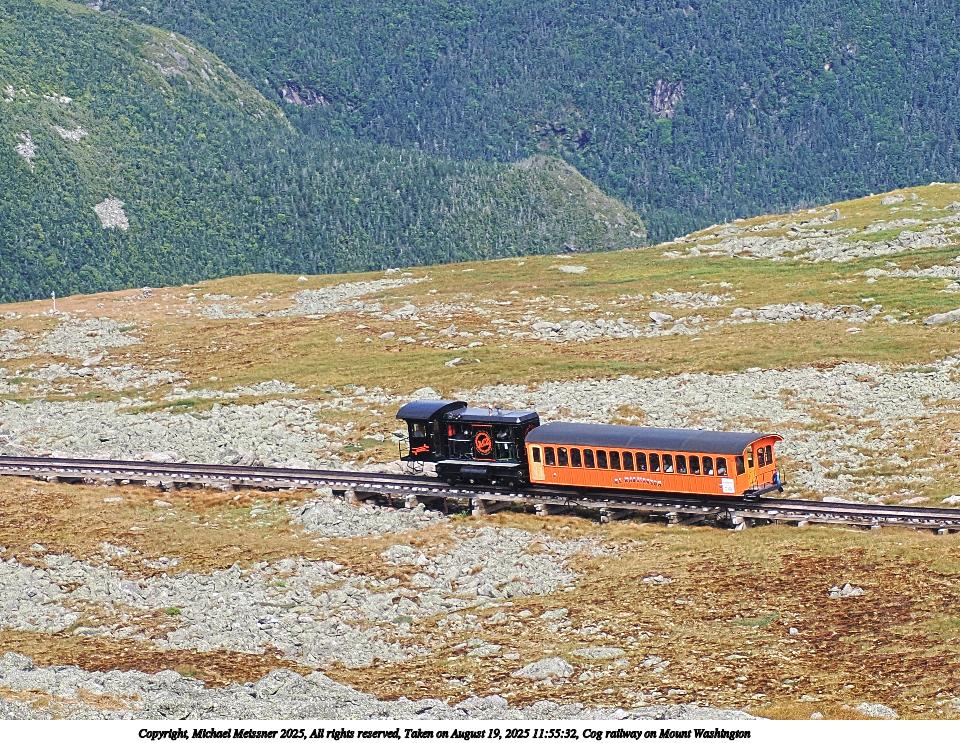 Picture #118: Cog railway on Mount Washington #5 960x743, 187,412 bytes (184K), (html file) Copyright, Michael Meissner 2025, All rights reserved OM OM1 camera with Olympus-m43 12-200mm f/3.5-6.3 lens f/7.1, ISO 200, 1/125 sec, 42.0mm, auto mode, vivid color, matrix metering, digital zoom x2, IS Auto, anti-shock 35mm equivalent focal length 168.0mm, digital zoom x2 Programs used: crop, raw therapee Taken by Michael Meissner on August 19, 2025 11:04:47 Last modified on August 23, 2025 at 17:14 |