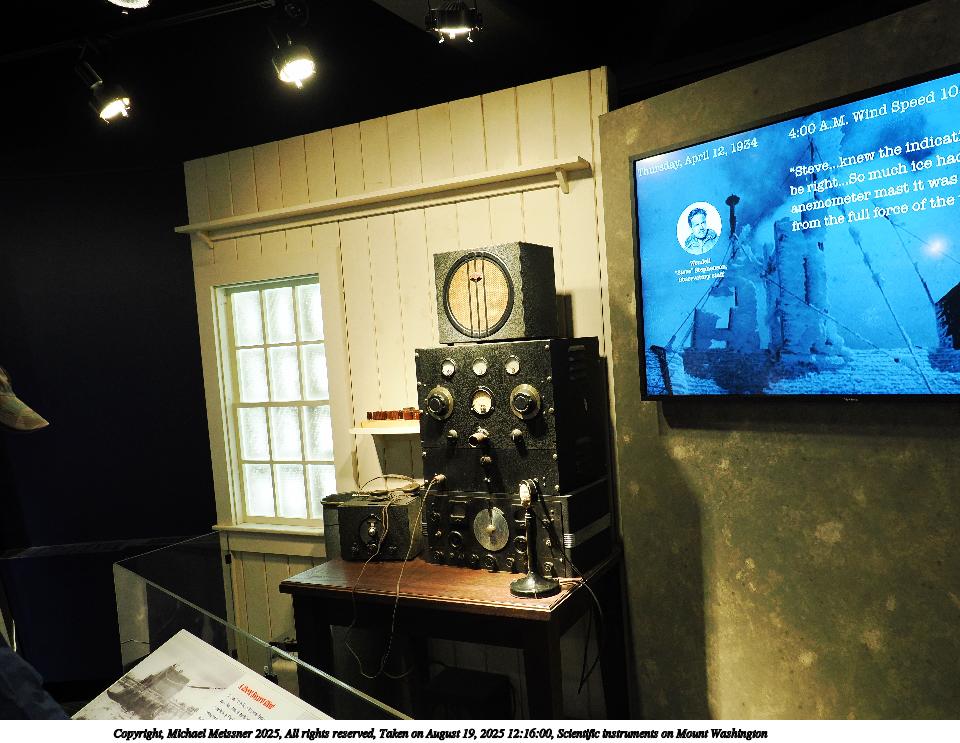 Picture #86: Scientific instruments on Mount Washington #3 960x743, 126,970 bytes (124K), (html file) Copyright, Michael Meissner 2025, All rights reserved OM OM3 camera with Olympus-m43 7-14mm f/2.8 lens f/2.8, ISO 3200, 1/60 sec, 12.0mm, auto mode, vivid color, matrix metering, IS Auto, face detection, anti-shock 35mm equivalent focal length 24.0mm Programs used: crop, raw therapee Taken by Michael Meissner on August 19, 2025 12:16:06 Last modified on August 23, 2025 at 17:34 |