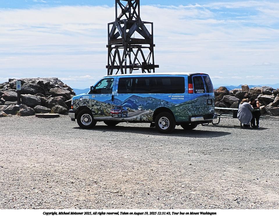 Picture #84: Tour bus on Mount Washington 960x743, 219,301 bytes (215K), (html file) Copyright, Michael Meissner 2025, All rights reserved OM OM1 camera with Olympus-m43 12-200mm f/3.5-6.3 lens f/10.0, ISO 200, 1/400 sec, 17.0mm, auto mode, vivid color, matrix metering, digital zoom x2, IS Auto 35mm equivalent focal length 68.0mm, digital zoom x2 Programs used: crop, raw therapee Taken by Michael Meissner on August 19, 2025 12:31:43 Last modified on August 23, 2025 at 17:37 |