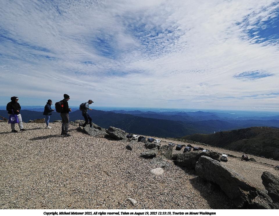 Picture #110: Tourists on Mount Washington 960x743, 120,012 bytes (118K), (html file) Copyright, Michael Meissner 2025, All rights reserved OM OM1 camera with Olympus-m43 12-200mm f/3.5-6.3 lens f/10.0, ISO 200, 1/320 sec, 31.0mm, auto mode, vivid color, matrix metering, digital zoom x2, IS Auto, anti-shock 35mm equivalent focal length 124.0mm, digital zoom x2 Programs used: crop, raw therapee Taken by Michael Meissner on August 19, 2025 11:48:36 Last modified on August 23, 2025 at 17:23 |