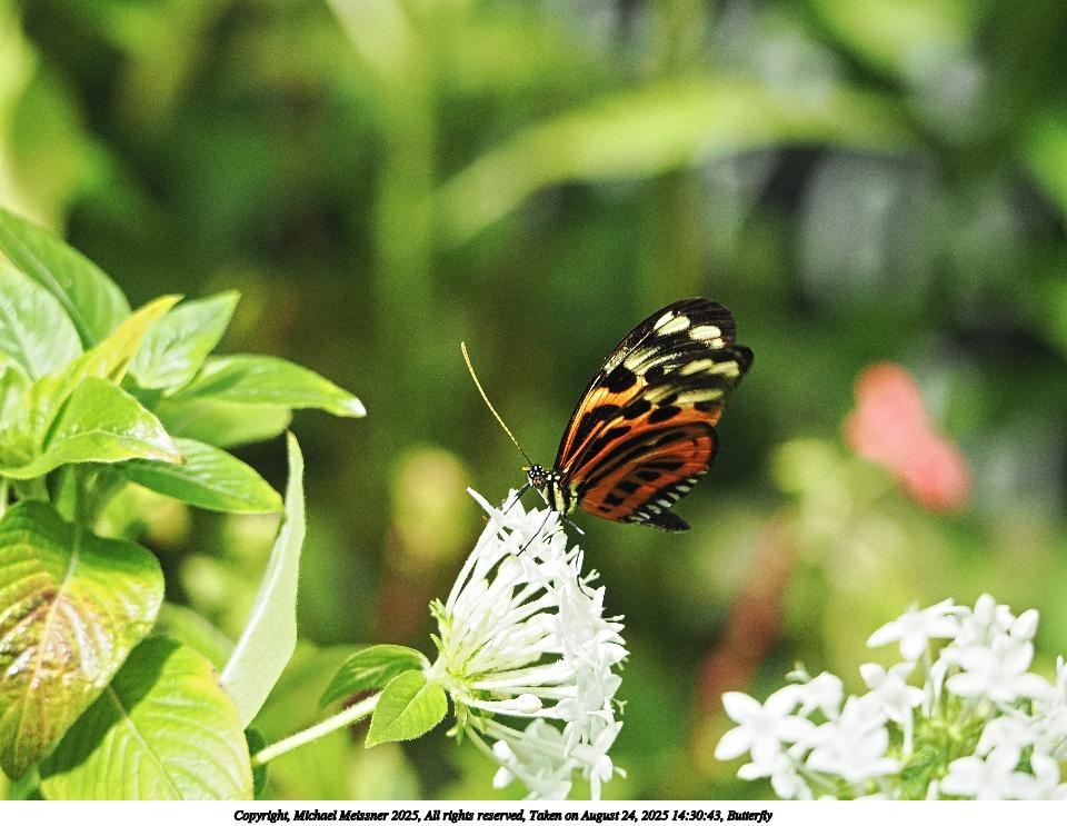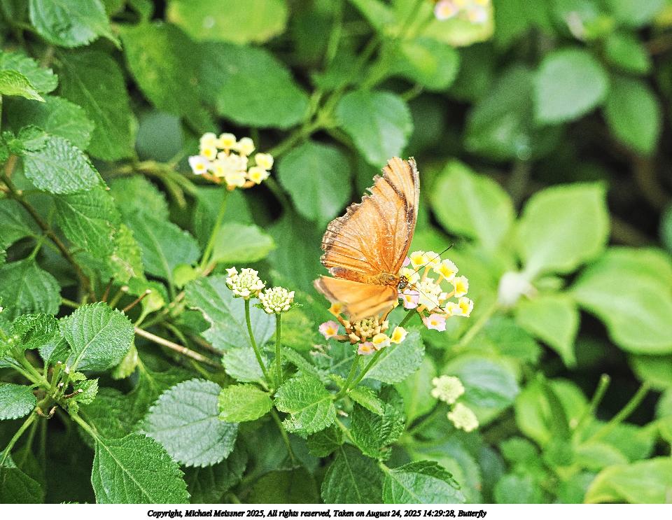 Picture #55: Butterfly #9 960x743, 127,727 bytes (125K), (html file) Copyright, Michael Meissner 2025, All rights reserved OM OM3 camera with OM 75-300mm-II f/4.8-6.7 lens f/6.3, ISO 1000, 1/500 sec, 215.0mm, auto mode, vivid color, matrix metering, IS Auto, face detection 35mm equivalent focal length 431.0mm Programs used: crop, raw therapee Taken by Michael Meissner on August 24, 2025 14:30:22 Last modified on August 26, 2025 at 00:37 |