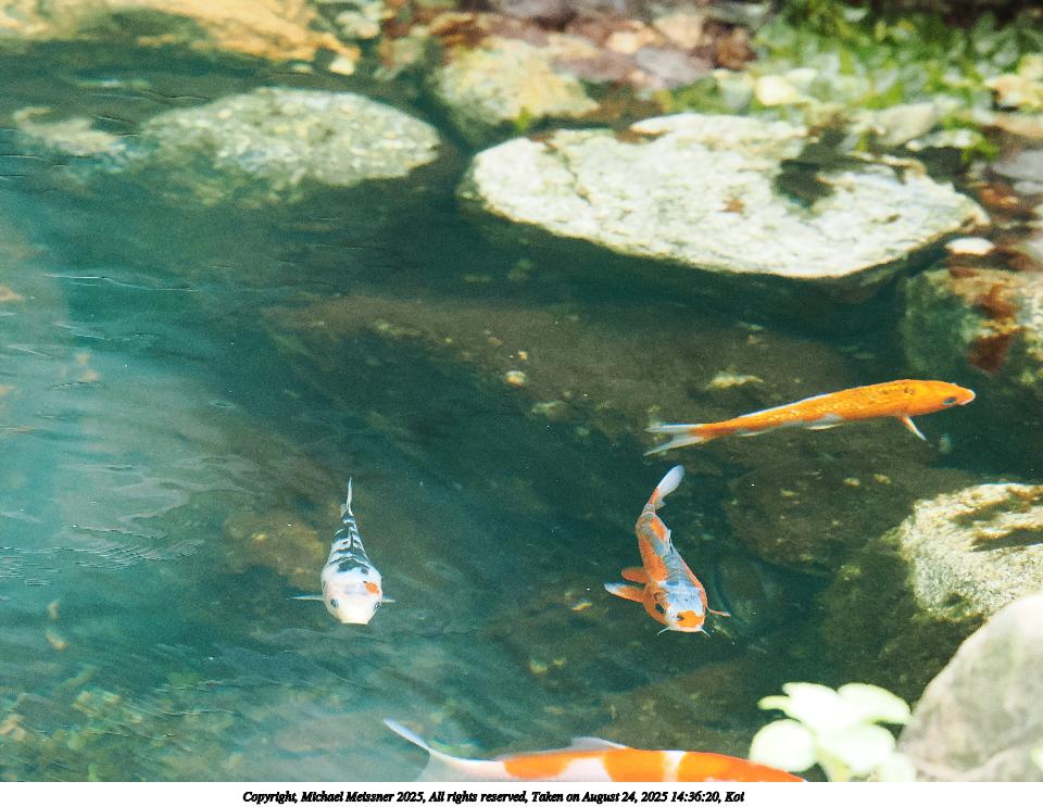 Picture #46: Koi #2 960x743, 130,251 bytes (128K), (html file) Copyright, Michael Meissner 2025, All rights reserved OM OM3 camera with OM 75-300mm-II f/4.8-6.7 lens f/5.6, ISO 4000, 1/500 sec, 140.0mm, auto mode, vivid color, matrix metering, IS Auto, face detection 35mm equivalent focal length 280.0mm Programs used: crop, raw therapee Taken by Michael Meissner on August 24, 2025 14:36:20 Last modified on August 26, 2025 at 00:39 |
