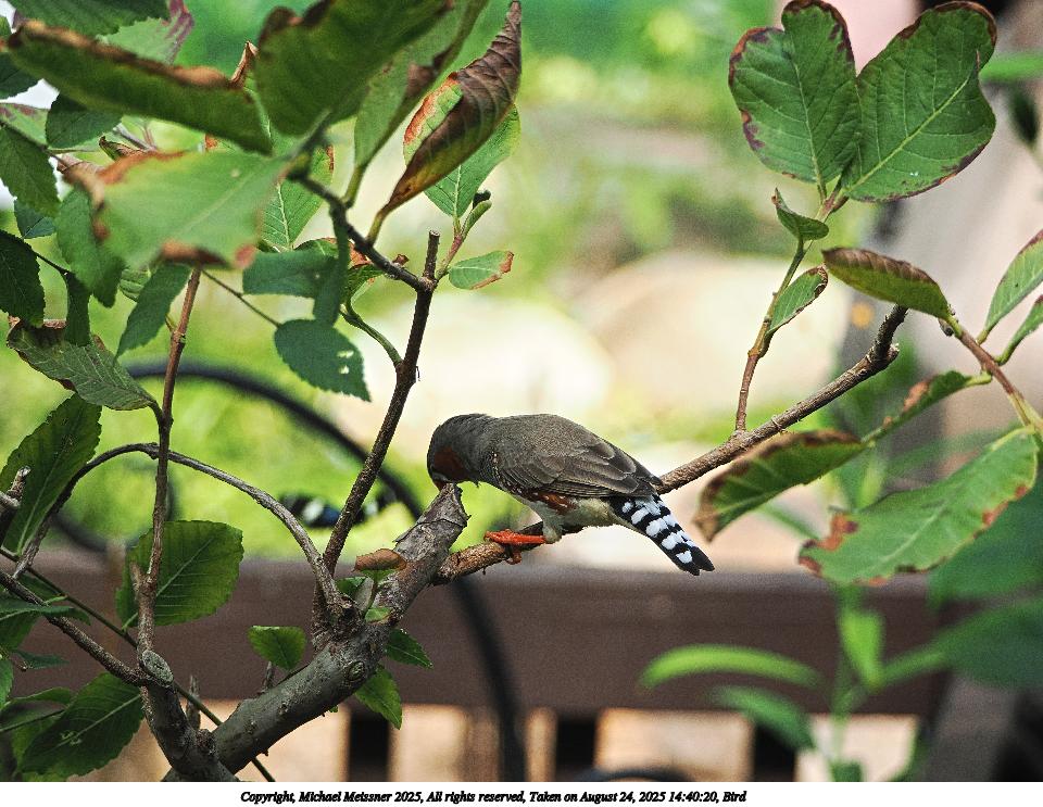 Picture #37: Bird #2 960x743, 110,590 bytes (108K), (html file) Copyright, Michael Meissner 2025, All rights reserved OM OM3 camera with OM 75-300mm-II f/4.8-6.7 lens f/6.3, ISO 2500, 1/500 sec, 221.0mm, auto mode, vivid color, matrix metering, IS Auto, face detection 35mm equivalent focal length 443.0mm Programs used: crop, gimp, raw therapee Taken by Michael Meissner on August 24, 2025 14:41:14 Last modified on August 26, 2025 at 00:43 |