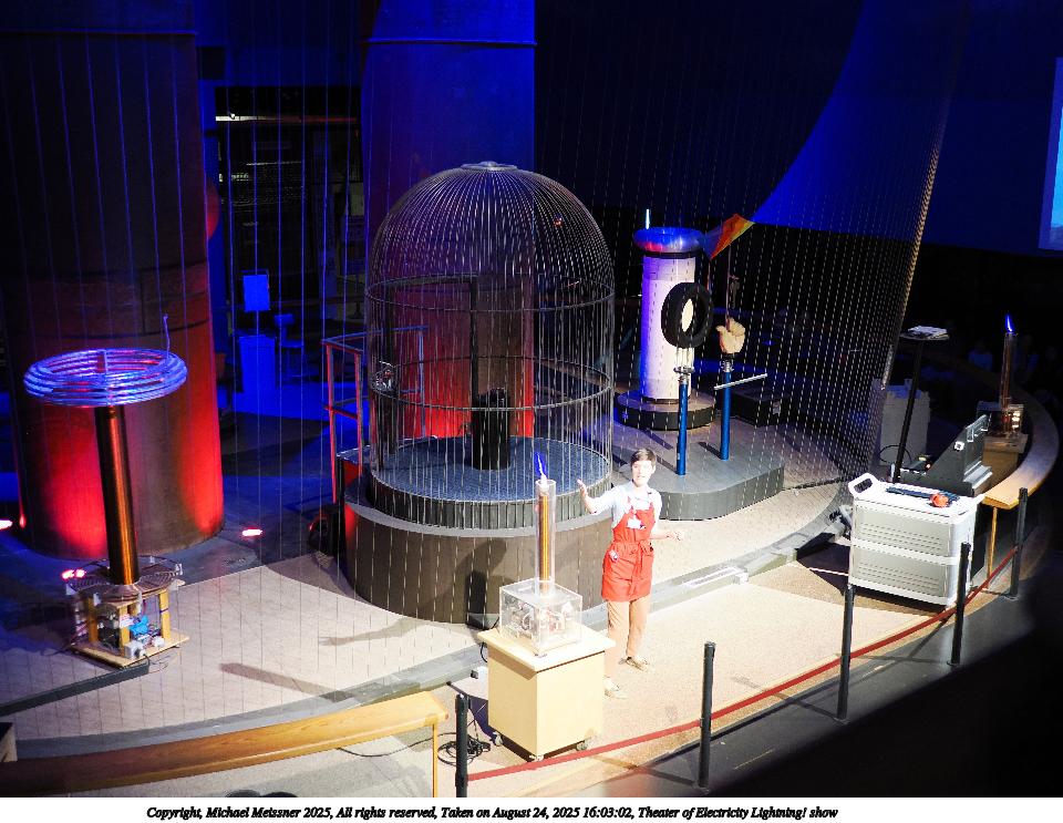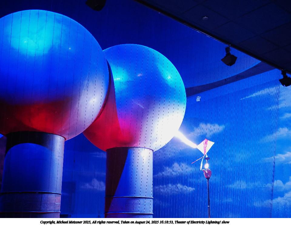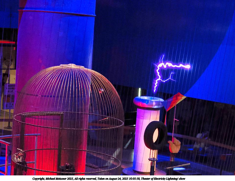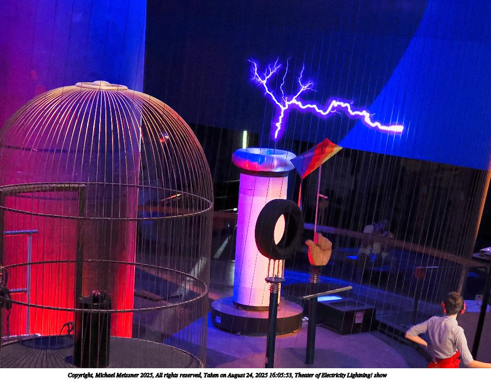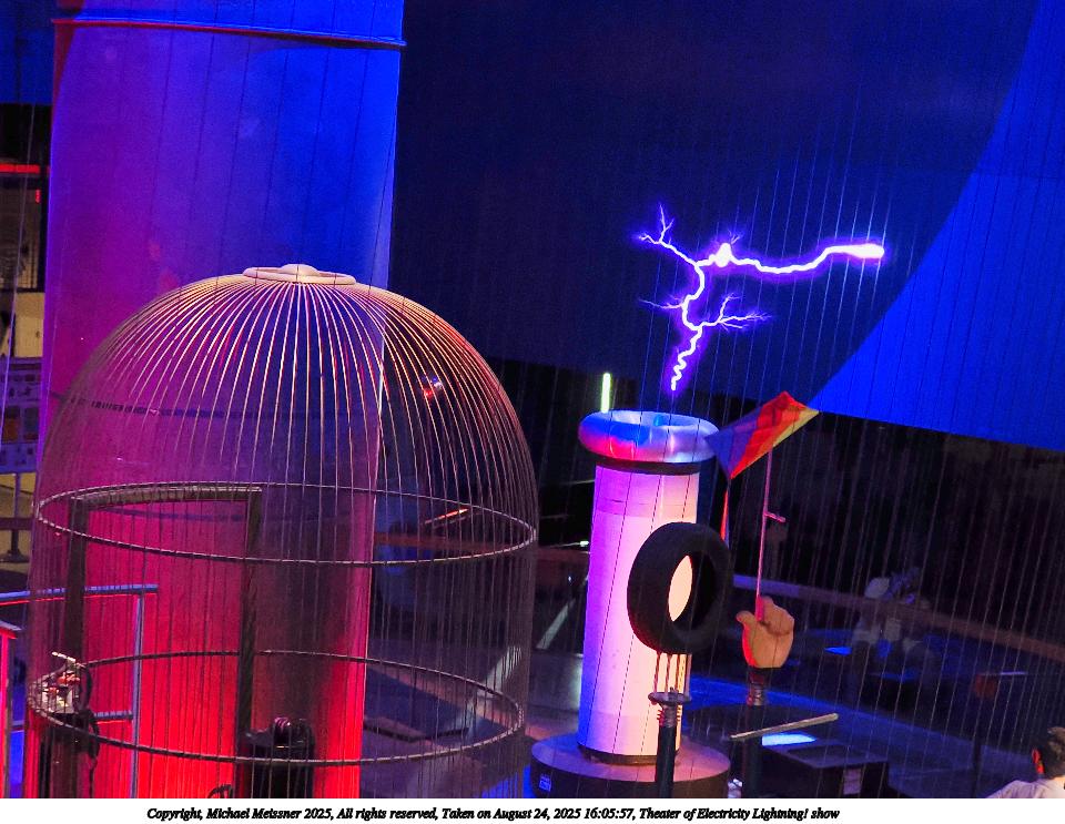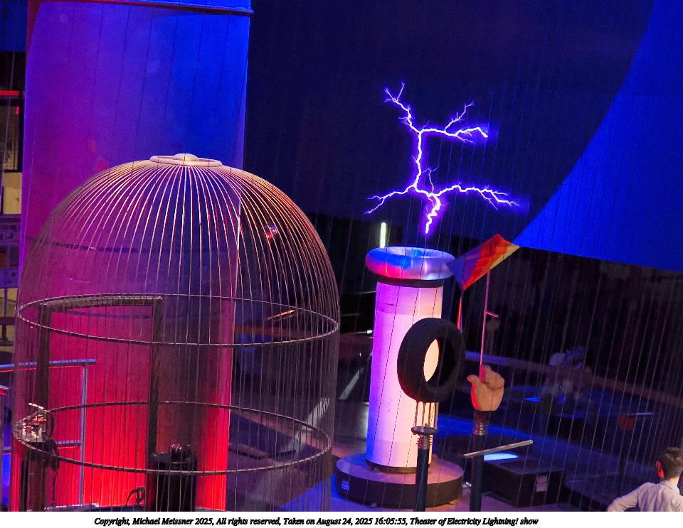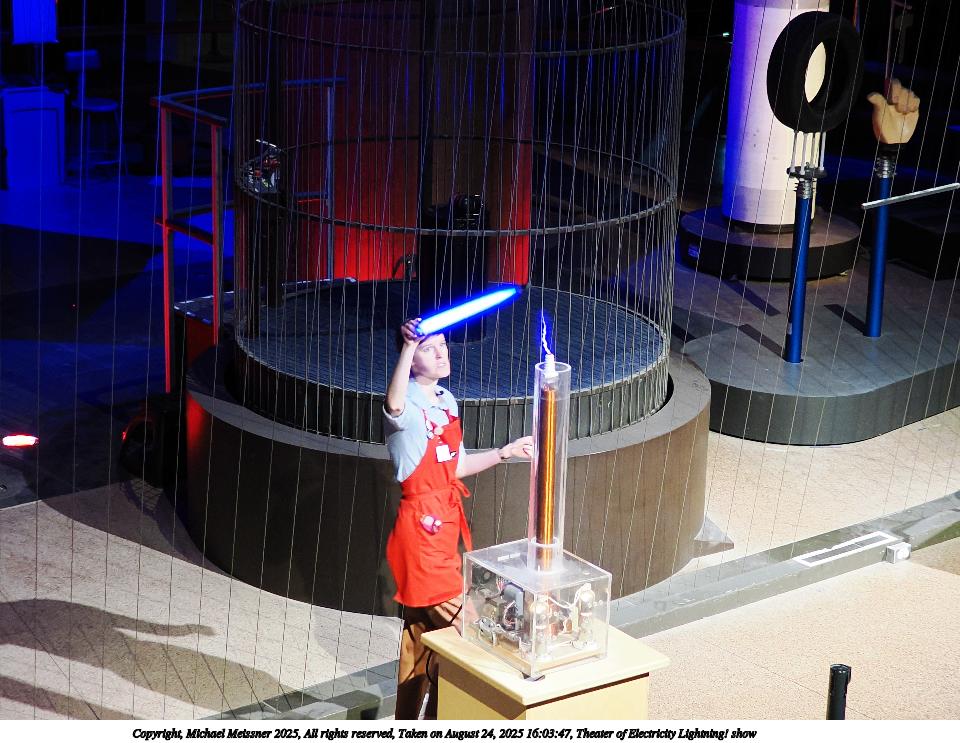 Picture #27: Theater of Electricity Lightning! show #8 960x743, 138,938 bytes (136K), (html file) Copyright, Michael Meissner 2025, All rights reserved OM OM3 camera with OM 20mm f/1.4 lens f/1.4, ISO 4000, 1/60 sec, 20.0mm, auto mode, vivid color, matrix metering, bias -0.3, digital zoom x2, IS Auto, face detection, anti-shock 35mm equivalent focal length 80.0mm, digital zoom x2 Programs used: crop, raw therapee Taken by Michael Meissner on August 24, 2025 16:05:58 Last modified on August 26, 2025 at 02:02 |