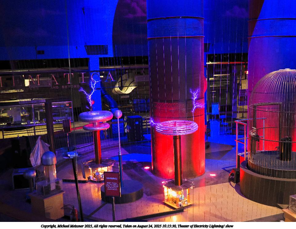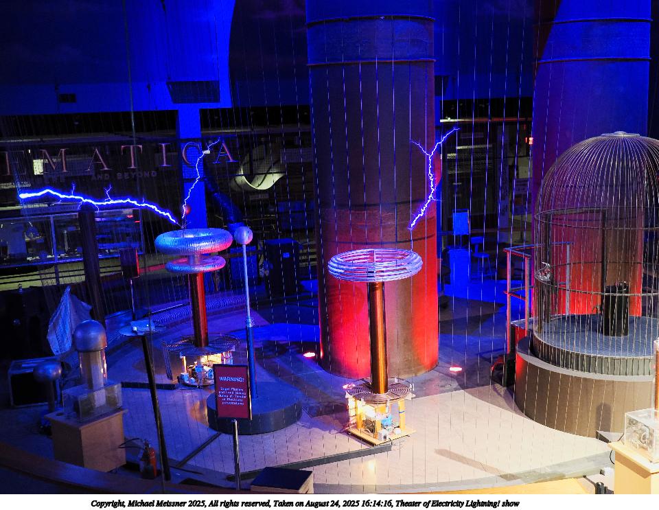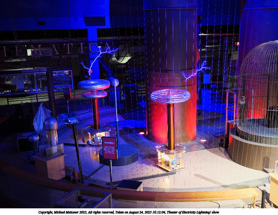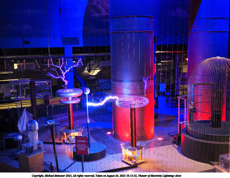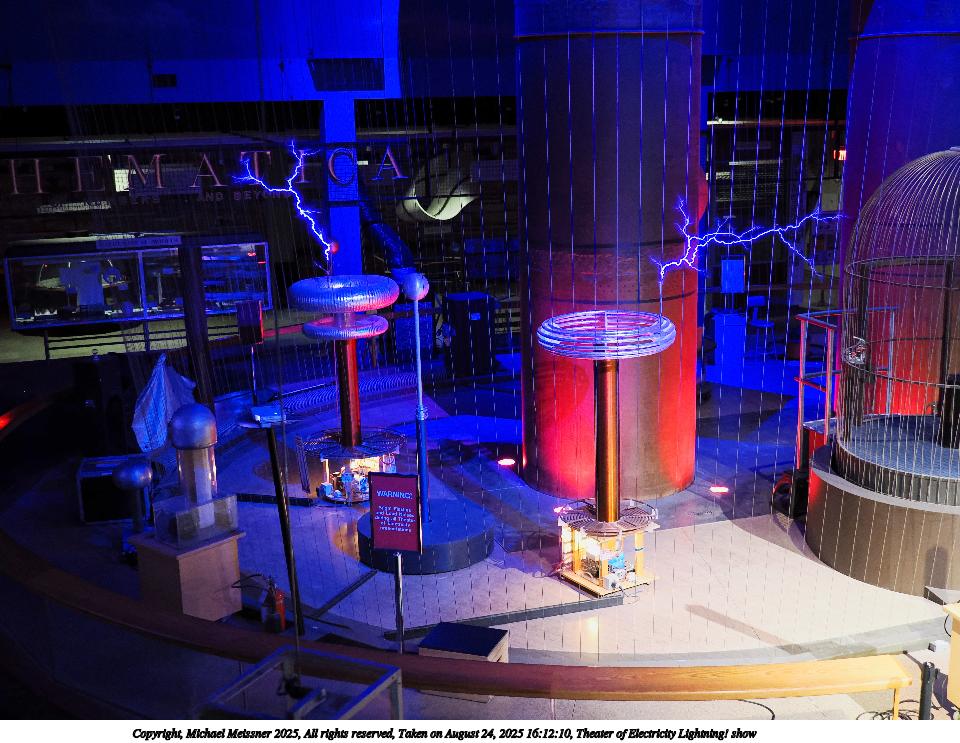 Picture #26: Theater of Electricity Lightning! show #9 960x743, 152,025 bytes (149K), (html file) Copyright, Michael Meissner 2025, All rights reserved OM OM3 camera with OM 20mm f/1.4 lens f/1.4, ISO 3200, 1/60 sec, 20.0mm, auto mode, vivid color, matrix metering, bias -0.3, IS Auto, face detection, anti-shock 35mm equivalent focal length 40.0mm Programs used: crop, raw therapee Taken by Michael Meissner on August 24, 2025 16:12:04 Last modified on August 26, 2025 at 02:02 |