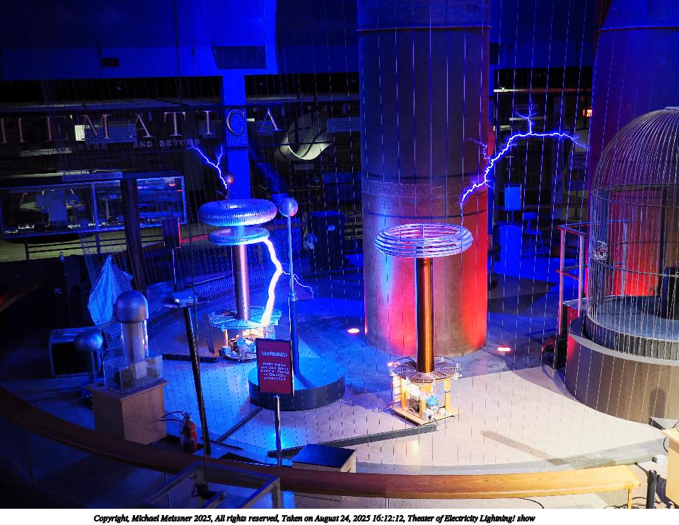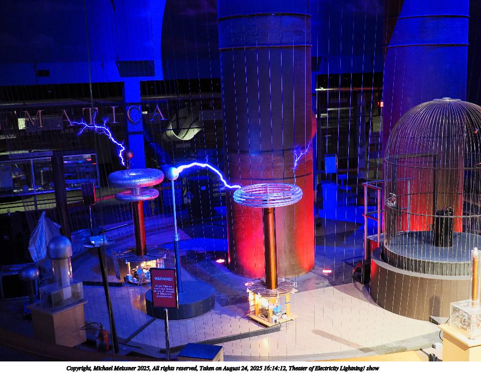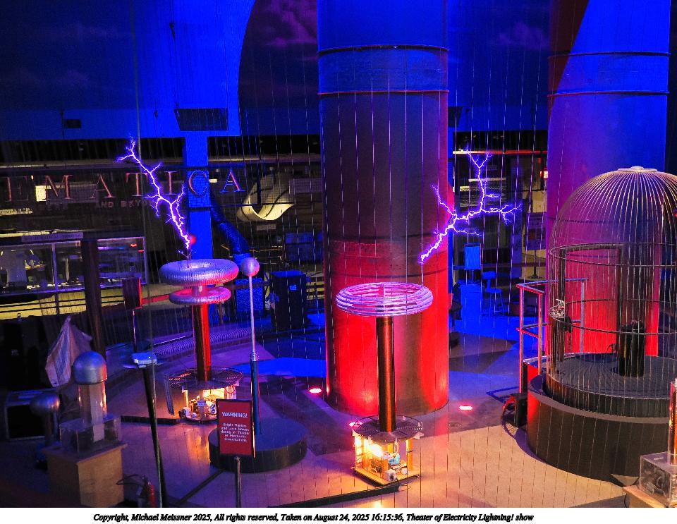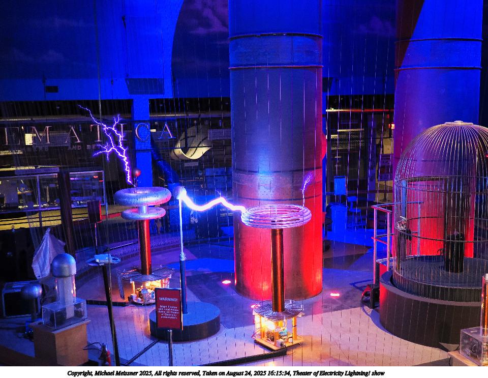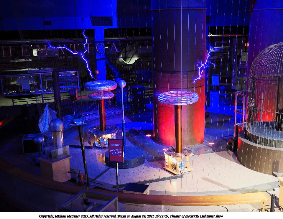 Picture #14: Theater of Electricity Lightning! show #21 960x743, 153,300 bytes (150K), (html file) Copyright, Michael Meissner 2025, All rights reserved OM OM3 camera with OM 20mm f/1.4 lens f/1.4, ISO 5000, 1/60 sec, 20.0mm, auto mode, vivid color, matrix metering, bias -0.3, IS Auto, face detection, anti-shock 35mm equivalent focal length 40.0mm Programs used: crop, raw therapee Taken by Michael Meissner on August 24, 2025 16:15:31 Last modified on August 26, 2025 at 02:07 |