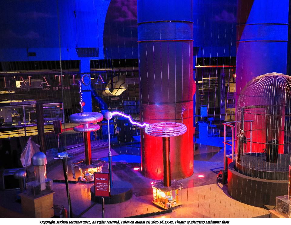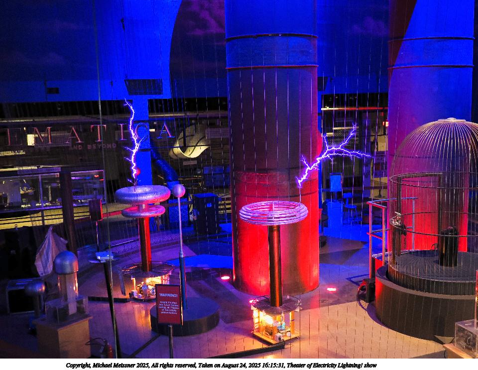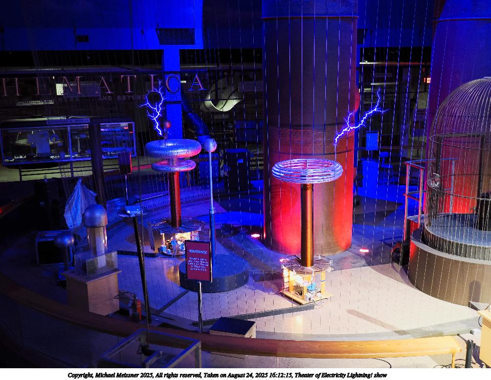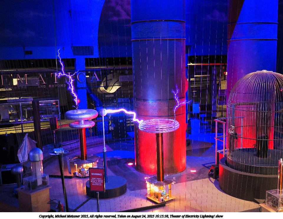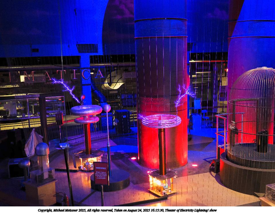 Picture #14: Theater of Electricity Lightning! show #21 960x743, 153,300 bytes (150K), (html file) Copyright, Michael Meissner 2025, All rights reserved OM OM3 camera with OM 20mm f/1.4 lens f/1.4, ISO 5000, 1/60 sec, 20.0mm, auto mode, vivid color, matrix metering, bias -0.3, IS Auto, face detection, anti-shock 35mm equivalent focal length 40.0mm Programs used: crop, raw therapee Taken by Michael Meissner on August 24, 2025 16:15:31 Last modified on August 26, 2025 at 02:07 |