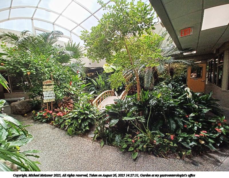 Picture #2: Garden at my gastroenterologist's office 800x623, 192,430 bytes (188K), (html file) Copyright, Michael Meissner 2025, All rights reserved Samsung A32 5G phone f/2.2, ISO 40, 1/220 sec, 1.4mm, auto mode, center weight metering 35mm equivalent focal length 13.0mm Programs used: crop, raw therapee Taken by Michael Meissner on August 26, 2025 14:27:31 Last modified on August 26, 2025 at 22:33 |