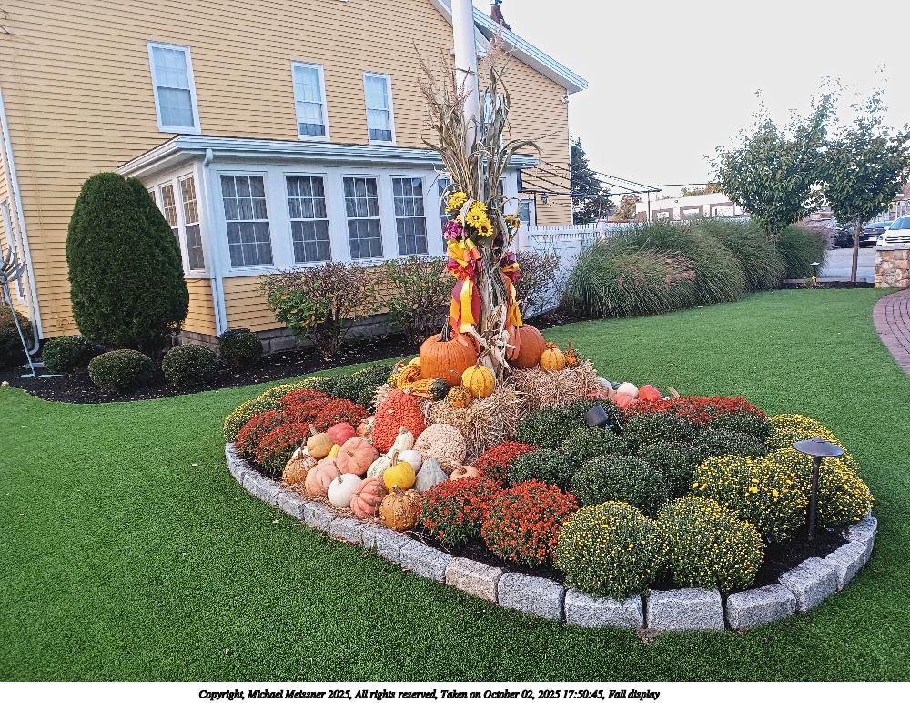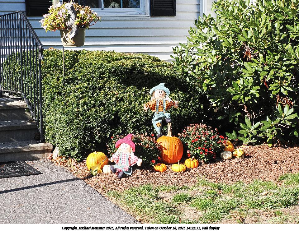 Picture #44: Fall display #2 1000x773, 285,876 bytes (280K), (html file) Copyright, Michael Meissner 2025, All rights reserved Samsung A32 5G phone f/1.8, ISO 100, 1/60 sec, 4.6mm, auto mode, spot metering 35mm equivalent focal length 25.0mm Programs used: crop, raw therapee Taken by Michael Meissner on October 02, 2025 17:50:45 Last modified on October 23, 2025 at 01:12 |