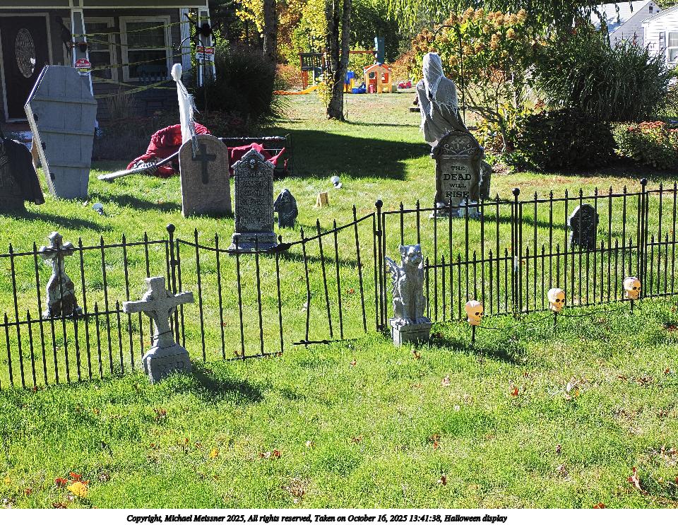 Picture #60: Halloween display #4 960x743, 337,340 bytes (330K), (html file) Copyright, Michael Meissner 2025, All rights reserved OM OM1 camera with Olympus-m43 12-200mm f/3.5-6.3 lens f/7.1, ISO 200, 1/250 sec, 25.0mm, auto mode, vivid color, matrix metering, IS Auto, face detection, anti-shock 35mm equivalent focal length 50.0mm Taken by Michael Meissner on October 16, 2025 13:41:38 Last modified on October 18, 2025 at 22:13 |