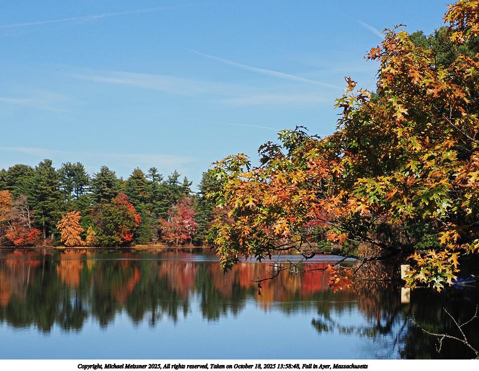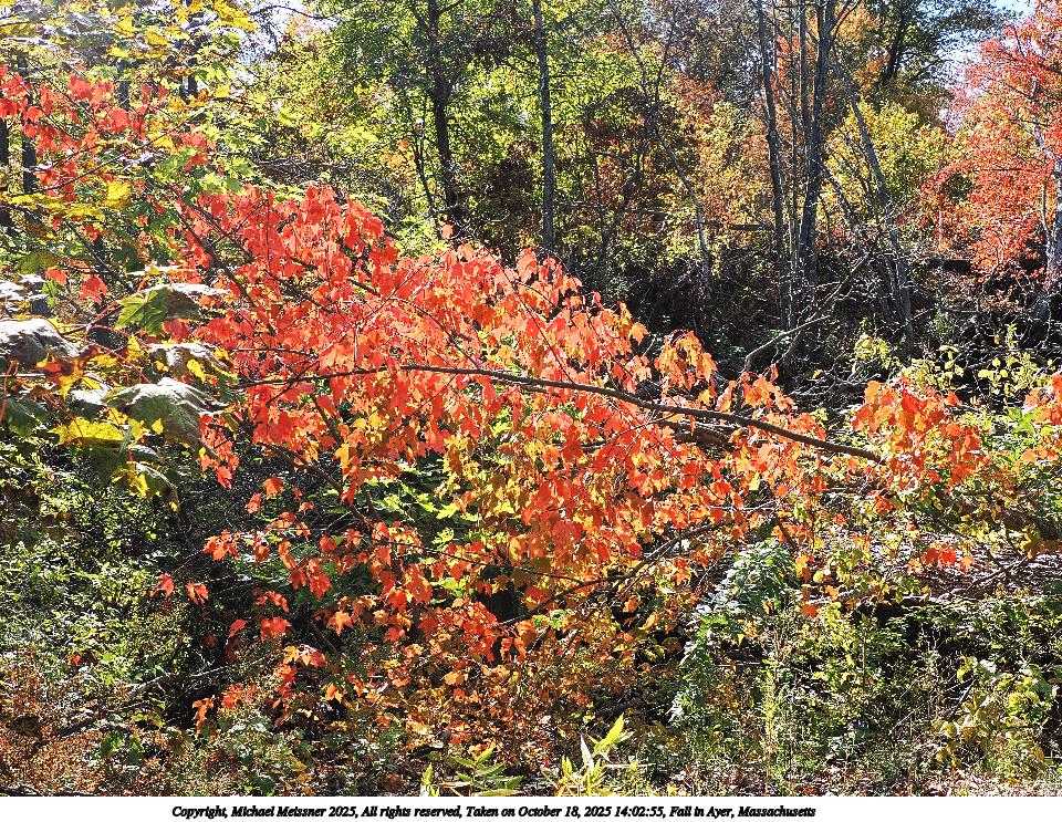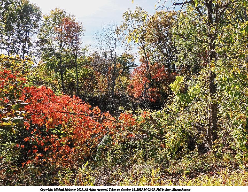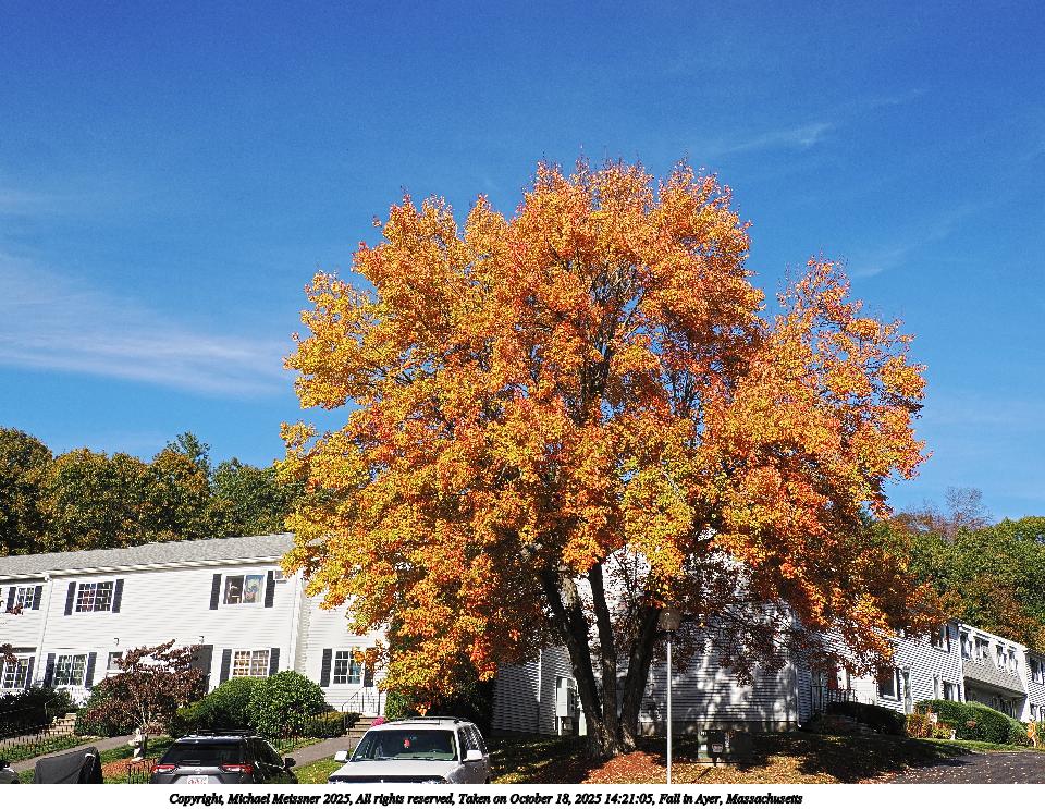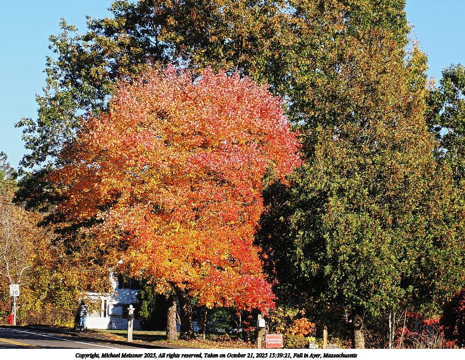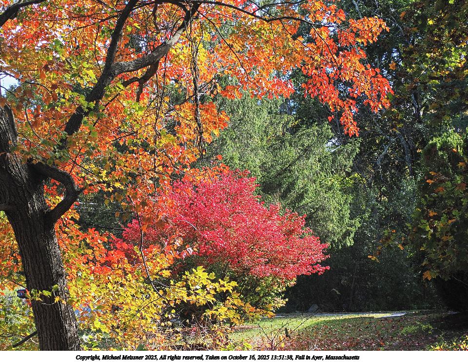 Picture #47: Fall in Ayer, Massachusetts #10 960x743, 245,507 bytes (240K), (html file) Copyright, Michael Meissner 2025, All rights reserved OM OM1 camera with Olympus-m43 12-200mm f/3.5-6.3 lens f/8.0, ISO 200, 1/500 sec, 18.0mm, auto mode, vivid color, matrix metering, IS Auto, face detection 35mm equivalent focal length 36.0mm Taken by Michael Meissner on October 18, 2025 14:21:05 Last modified on October 18, 2025 at 22:29 This picture is one of my favorites. |