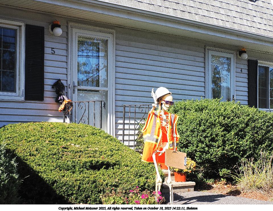 Picture #46: Skeleton 960x743, 273,544 bytes (268K), (html file) Copyright, Michael Meissner 2025, All rights reserved OM OM1 camera with Olympus-m43 12-200mm f/3.5-6.3 lens f/8.0, ISO 200, 1/320 sec, 34.0mm, auto mode, vivid color, matrix metering, continous focus, IS Auto, face detection, anti-shock 35mm equivalent focal length 68.0mm Taken by Michael Meissner on October 18, 2025 14:22:11 Last modified on October 18, 2025 at 22:30 |