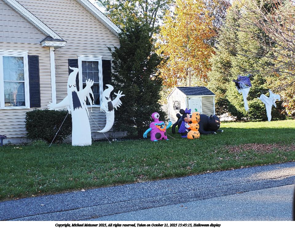 Picture #63: Halloween display 960x743, 299,211 bytes (293K), (html file) Copyright, Michael Meissner 2025, All rights reserved OM OM1 camera with Olympus-m43 12-200mm f/3.5-6.3 lens f/6.3, ISO 200, 1/250 sec, 20.0mm, auto mode, vivid color, matrix metering, IS Auto, face detection, anti-shock 35mm equivalent focal length 40.0mm Taken by Michael Meissner on October 16, 2025 13:41:04 Last modified on October 18, 2025 at 22:12 |