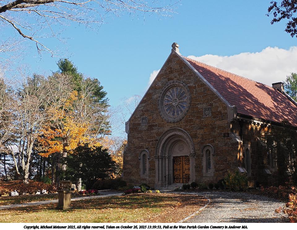 Picture #10: Fall at the West Parish Garden Cemetery in Andover MA. #9 960x743, 353,077 bytes (345K), (html file) Copyright, Michael Meissner 2025, All rights reserved OM OM1 camera with Olympus-m43 12-200mm f/3.5-6.3 lens f/8.0, ISO 200, 1/250 sec, 15.0mm, auto mode, vivid color, matrix metering, continous focus, IS Auto, anti-shock 35mm equivalent focal length 30.0mm Programs used: crop, raw therapee Taken by Michael Meissner on October 26, 2025 13:53:25 Last modified on October 26, 2025 at 20:42 |