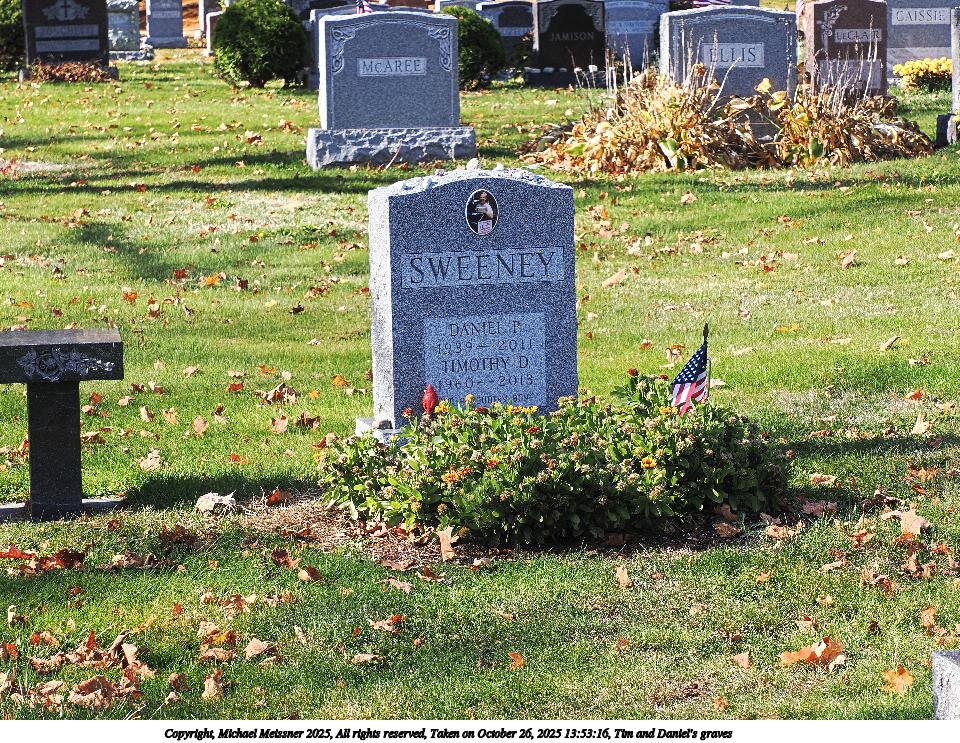 Picture #12: Tim and Daniel's graves 960x743, 333,960 bytes (327K), (html file) Copyright, Michael Meissner 2025, All rights reserved OM OM1 camera with Olympus-m43 12-200mm f/3.5-6.3 lens f/8.0, ISO 200, 1/200 sec, 56.0mm, auto mode, vivid color, matrix metering, continous focus, IS Auto, anti-shock 35mm equivalent focal length 112.0mm Programs used: crop, raw therapee Taken by Michael Meissner on October 26, 2025 13:53:16 Last modified on October 26, 2025 at 20:41 |