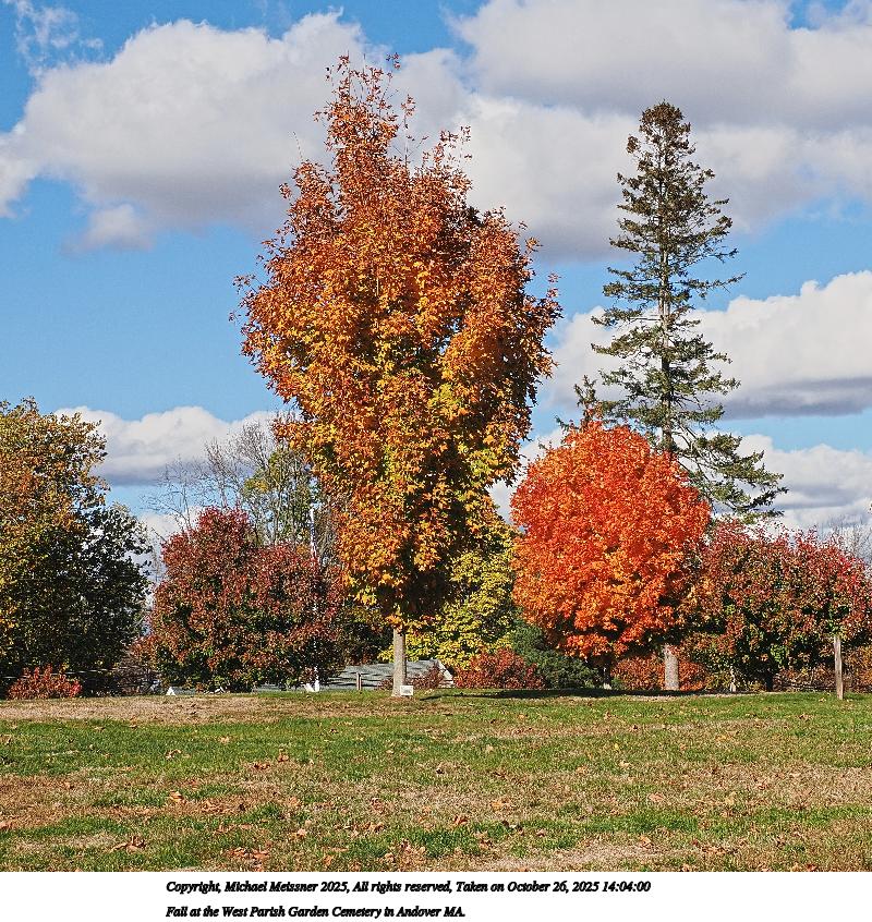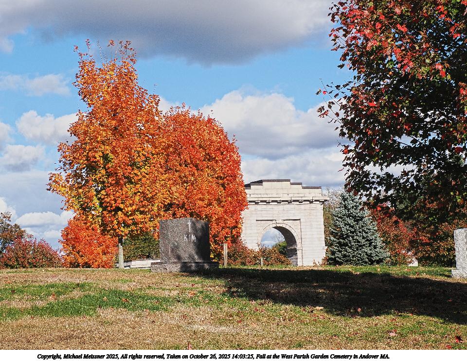 Picture #20: Fall at the West Parish Garden Cemetery in Andover MA. 960x743, 311,017 bytes (304K), (html file) Copyright, Michael Meissner 2025, All rights reserved OM OM1 camera with Olympus-m43 12-200mm f/3.5-6.3 lens f/9.0, ISO 200, 1/320 sec, 17.0mm, auto mode, vivid color, matrix metering, continous focus, IS Auto, anti-shock 35mm equivalent focal length 34.0mm Programs used: crop, raw therapee Taken by Michael Meissner on October 26, 2025 13:37:36 Last modified on October 26, 2025 at 20:39 |