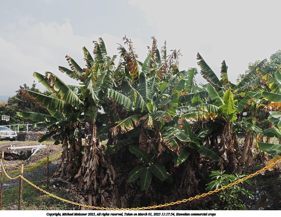Picture #20: Hawaiian commercial crops #6 Thumb: 480x360, 85,722 bytes (84K) Small: 960x743, 329,391 bytes (322K), (html file) Copyright, Michael Meissner 2025, All rights reserved Olympus E-M5-III camera with Olympus-m43 12-40mm f/2.8 lens f/4.5, ISO 200, 1/160 sec, 22.0mm, auto mode, vivid color, SHQ, matrix metering, bias 0.3, continous focus, IS Auto, anti-shock 35mm equivalent focal length 44.0mm Programs used: crop, raw therapee Taken by Michael Meissner on March 01, 2025 11:49:08 Last modified on March 17, 2025 at 01:02 |