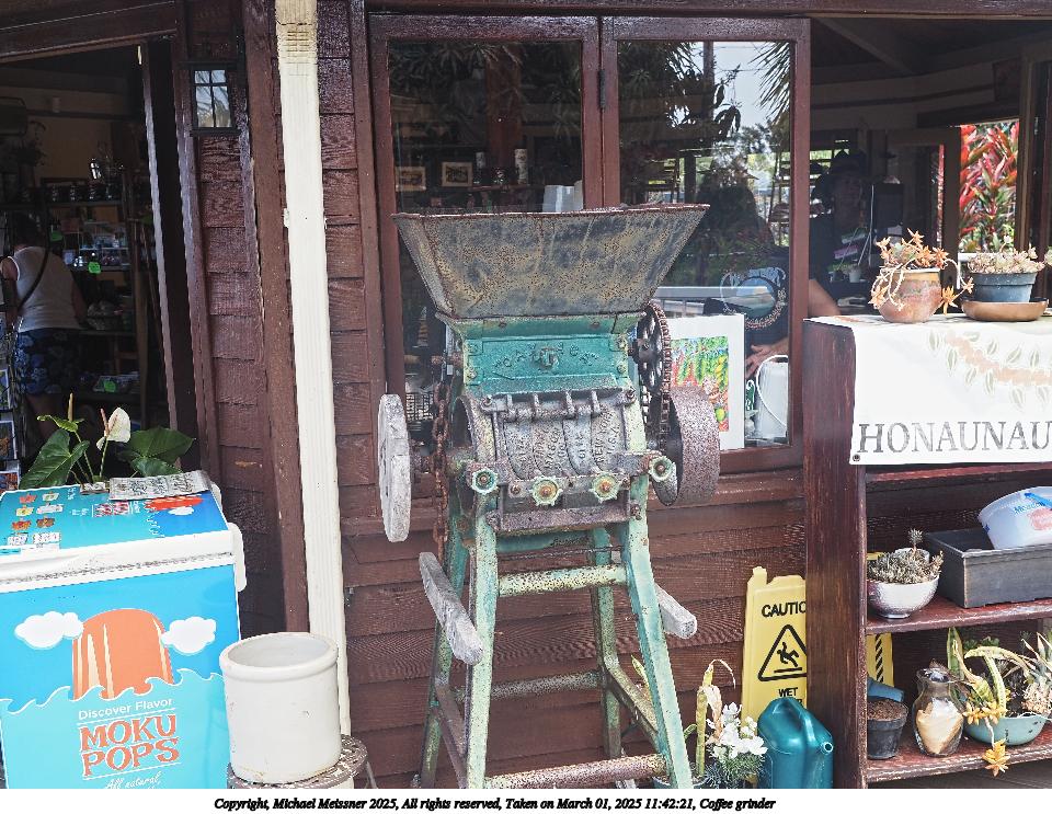 Picture #16: Coffee grinder Thumb: 480x360, 60,607 bytes (60K) Small: 960x743, 191,461 bytes (187K), (html file) Copyright, Michael Meissner 2025, All rights reserved Olympus E-M5-III camera with Olympus-m43 12-40mm f/2.8 lens f/4.5, ISO 200, 1/160 sec, 19.0mm, auto mode, vivid color, SHQ, matrix metering, bias 0.3, continous focus, IS Auto, anti-shock 35mm equivalent focal length 38.0mm Programs used: crop, raw therapee Taken by Michael Meissner on March 01, 2025 11:42:21 Last modified on March 17, 2025 at 00:53 |