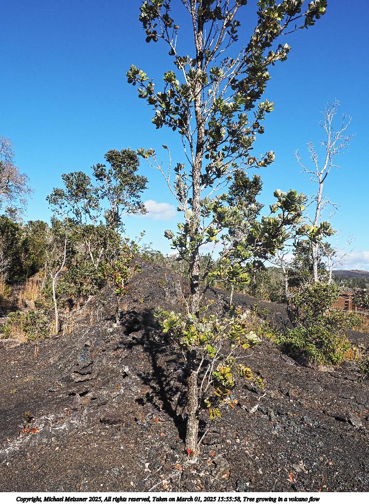 Picture #14: Tree growing in a volcano flow Thumb: 360x480, 76,161 bytes (75K) Small: 720x983, 290,896 bytes (285K), (html file) Copyright, Michael Meissner 2025, All rights reserved Olympus E-M5-III camera with Olympus-m43 12-40mm f/2.8 lens f/8.0, ISO 200, 1/500 sec, 12.0mm, auto mode, vivid color, SHQ, matrix metering, continous focus, IS Auto 35mm equivalent focal length 24.0mm Programs used: crop, raw therapee, rotate left Taken by Michael Meissner on March 01, 2025 15:55:58 Last modified on March 20, 2025 at 22:48 |