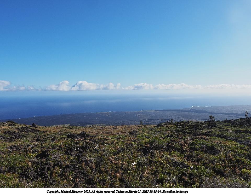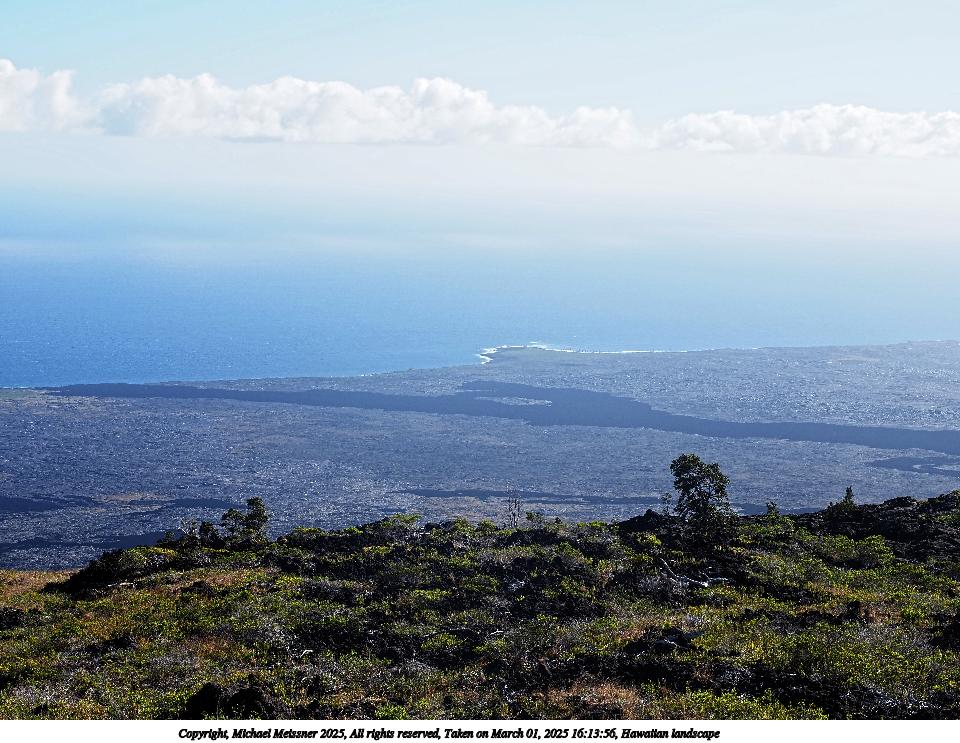 Picture #16: Hawaiian landscape Thumb: 480x360, 44,959 bytes (44K) Small: 960x743, 149,940 bytes (147K), (html file) Copyright, Michael Meissner 2025, All rights reserved Olympus E-M5-III camera with Olympus-m43 12-40mm f/2.8 lens f/8.0, ISO 200, 1/500 sec, 12.0mm, auto mode, vivid color, SHQ, matrix metering, continous focus, IS Auto 35mm equivalent focal length 24.0mm Programs used: crop, raw therapee Taken by Michael Meissner on March 01, 2025 16:13:14 Last modified on March 20, 2025 at 22:51 |