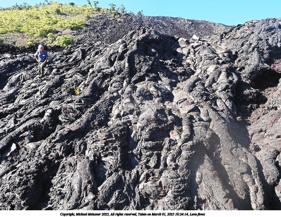 Picture #20: Lava flows Thumb: 480x360, 82,700 bytes (81K) Small: 960x743, 317,804 bytes (311K), (html file) Copyright, Michael Meissner 2025, All rights reserved Olympus E-M5-III camera with Olympus-m43 12-40mm f/2.8 lens f/5.6, ISO 200, 1/250 sec, 12.0mm, auto mode, vivid color, SHQ, matrix metering, continous focus, IS Auto, anti-shock 35mm equivalent focal length 24.0mm Programs used: crop, raw therapee Taken by Michael Meissner on March 01, 2025 16:23:08 Last modified on March 20, 2025 at 22:58 |