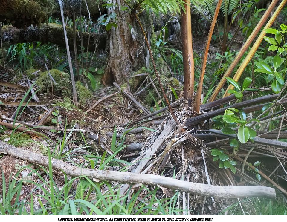 Picture #43: Hawaiian plant #2 Thumb: 480x360, 74,956 bytes (74K) Small: 960x743, 235,758 bytes (231K), (html file) Copyright, Michael Meissner 2025, All rights reserved Olympus E-M5-III camera with Olympus-m43 12-40mm f/2.8 lens f/2.8, ISO 1600, 1/60 sec, 26.0mm, auto mode, vivid color, SHQ, matrix metering, continous focus, IS Auto, anti-shock 35mm equivalent focal length 52.0mm Programs used: crop, raw therapee Taken by Michael Meissner on March 01, 2025 17:43:14 Last modified on March 20, 2025 at 23:16 |