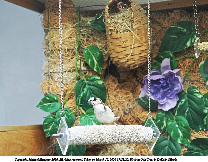 Picture #1: Birds at Oak Crest in DeKalb, Illinois Thumb: 400x300, 67,410 bytes (66K) Small: 900x698, 250,074 bytes (245K), (html file) Large: 3600x2700, 4,019,587 bytes (3.8M), (html file) Copyright, Michael Meissner 2026, All rights reserved OM OM3 camera with OM 20mm f/1.4 lens f/1.6, ISO 200, 1/80 sec, 20.0mm, auto mode, vivid color, matrix metering, continous focus, IS Auto, face detection, anti-shock 35mm equivalent focal length 40.0mm Programs used: adjusttime, crop, raw therapee Taken by Michael Meissner on March 15, 2026 17:50:59 Last modified on March 25, 2026 at 18:06 |