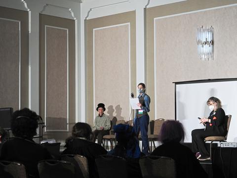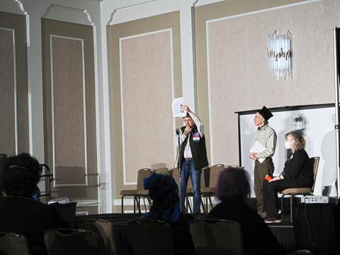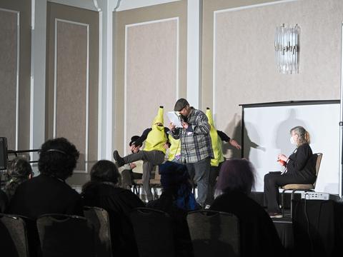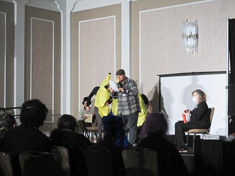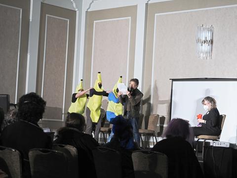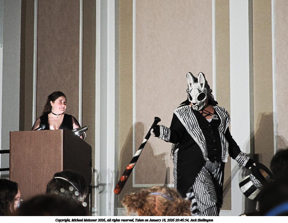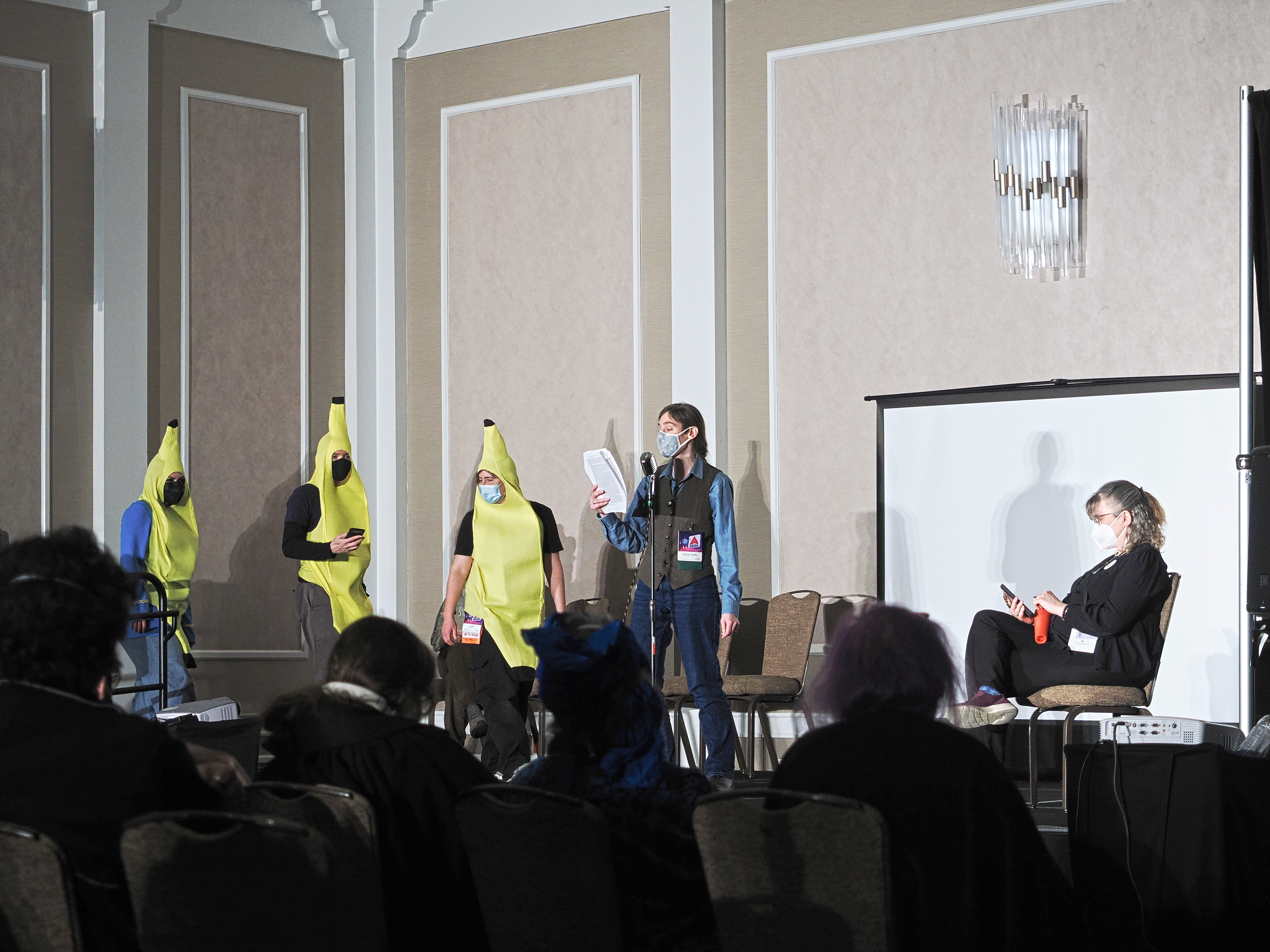 Picture #10: Dramatic readings from the Ig Nobel prizes #7 Thumb: 480x360, 48,172 bytes (48K) Small: 960x743, 131,737 bytes (129K), (html file) Large: 4800x3600, 9,456,213 bytes (9.0M), (html file) Copyright, Michael Meissner 2026, All rights reserved OM OM1 camera with Olympus-m43 12-40mm f/2.8 lens f/2.8, ISO 2000, 1/125 sec, 40.0mm, auto mode, vivid color, matrix metering, IS Auto, face detection, anti-shock 35mm equivalent focal length 80.0mm Programs used: crop, gimp, raw therapee Taken by Michael Meissner on January 17, 2026 15:22:30 Last modified on January 25, 2026 at 02:39 |