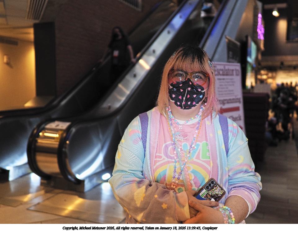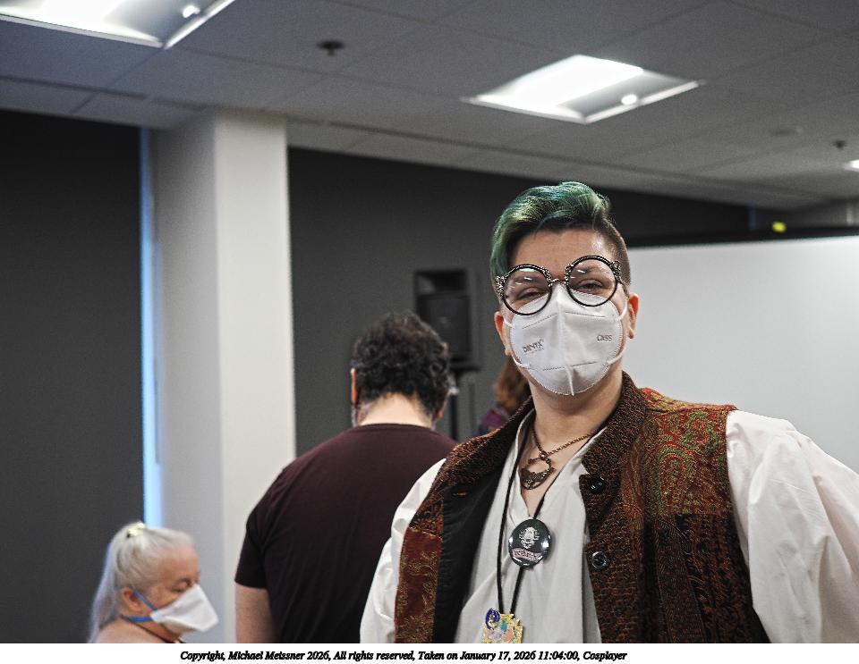 Picture #5: Cosplayer #3 Thumb: 480x360, 45,909 bytes (45K) Small: 960x743, 137,820 bytes (135K), (html file) Large: 4800x3600, 5,102,609 bytes (4.9M), (html file) Copyright, Michael Meissner 2026, All rights reserved OM OM3 camera with OM 20mm f/1.4 lens f/1.4, ISO 800, flash, 1/60 sec, 20.0mm, auto mode, vivid color, matrix metering, IS Auto, face detection, anti-shock 35mm equivalent focal length 40.0mm Programs used: crop, raw therapee Taken by Michael Meissner on January 17, 2026 11:05:34 Last modified on January 25, 2026 at 02:18 |