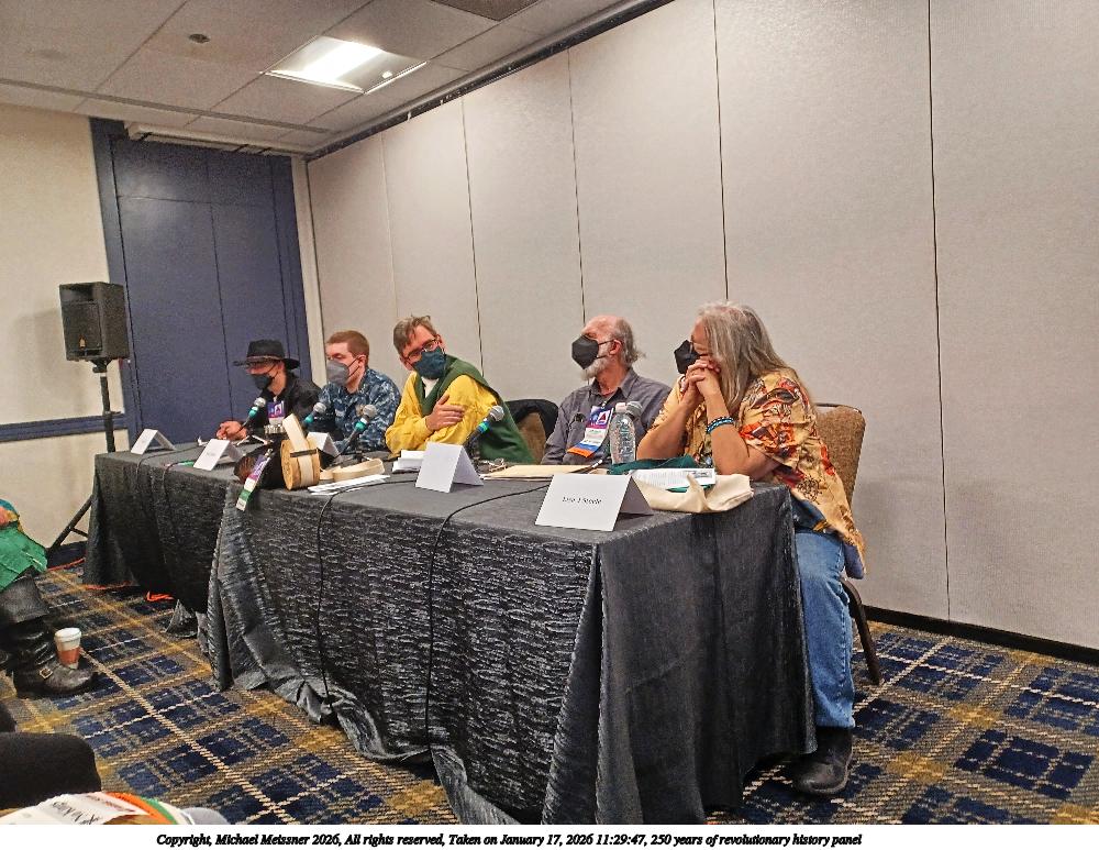Picture #7: 250 years of revolutionary history panel Thumb: 500x375, 40,914 bytes (40K) Small: 1000x773, 160,389 bytes (157K), (html file) Large: 4000x3000, 3,346,699 bytes (3.2M), (html file) Copyright, Michael Meissner 2026, All rights reserved Samsung A32 5G phone f/1.8, ISO 250, 1/40 sec, 4.6mm, auto mode, center weight metering 35mm equivalent focal length 25.0mm Programs used: raw therapee Taken by Michael Meissner on January 17, 2026 11:29:47 Last modified on January 25, 2026 at 02:21 |