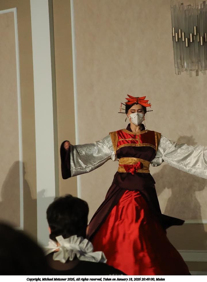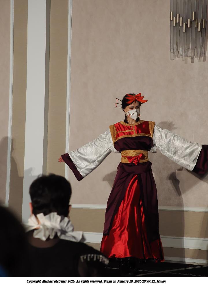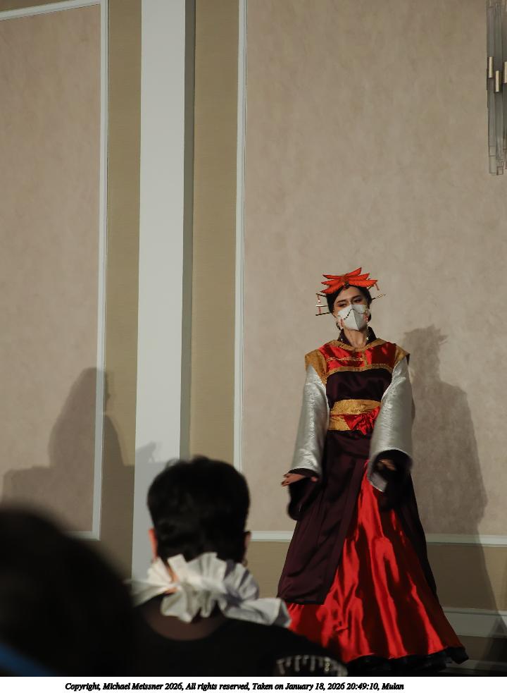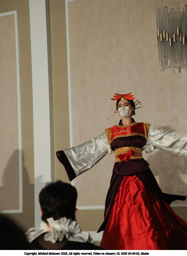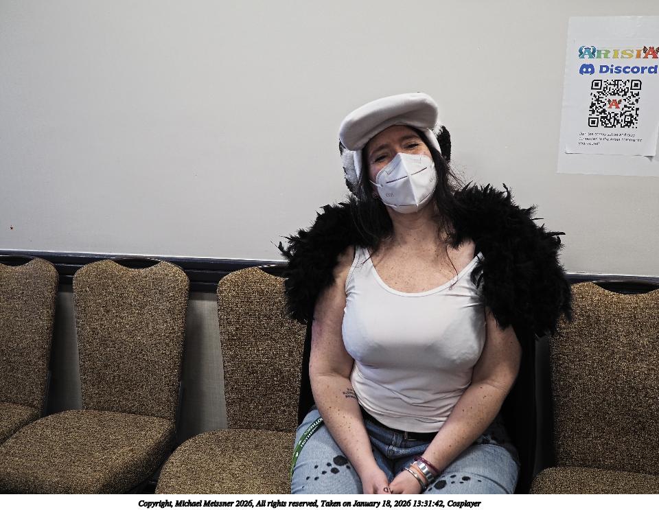 Picture #4: Cosplayer #2 Thumb: 480x360, 44,152 bytes (44K) Small: 960x743, 104,382 bytes (102K), (html file) Large: 4800x3600, 3,154,871 bytes (3.0M), (html file) Copyright, Michael Meissner 2026, All rights reserved OM OM3 camera with OM 20mm f/1.4 lens f/1.8, ISO 200, flash, 1/100 sec, 20.0mm, auto mode, vivid color, matrix metering, IS Auto, face detection, anti-shock 35mm equivalent focal length 40.0mm Programs used: crop, raw therapee Taken by Michael Meissner on January 17, 2026 11:04:21 Last modified on January 25, 2026 at 02:16 |