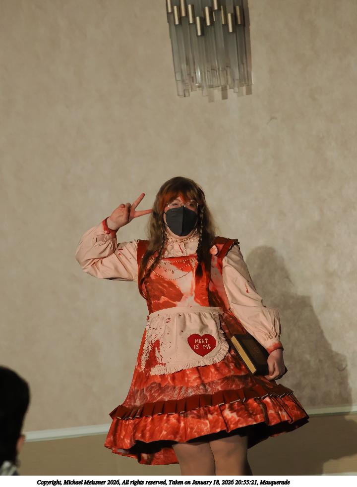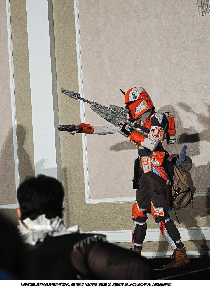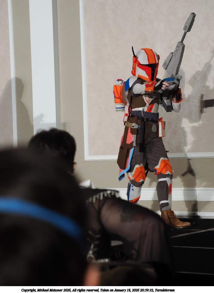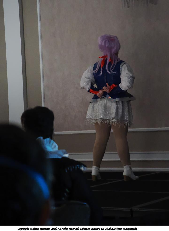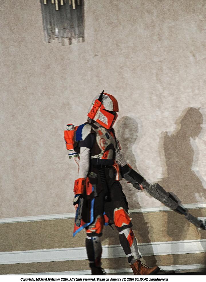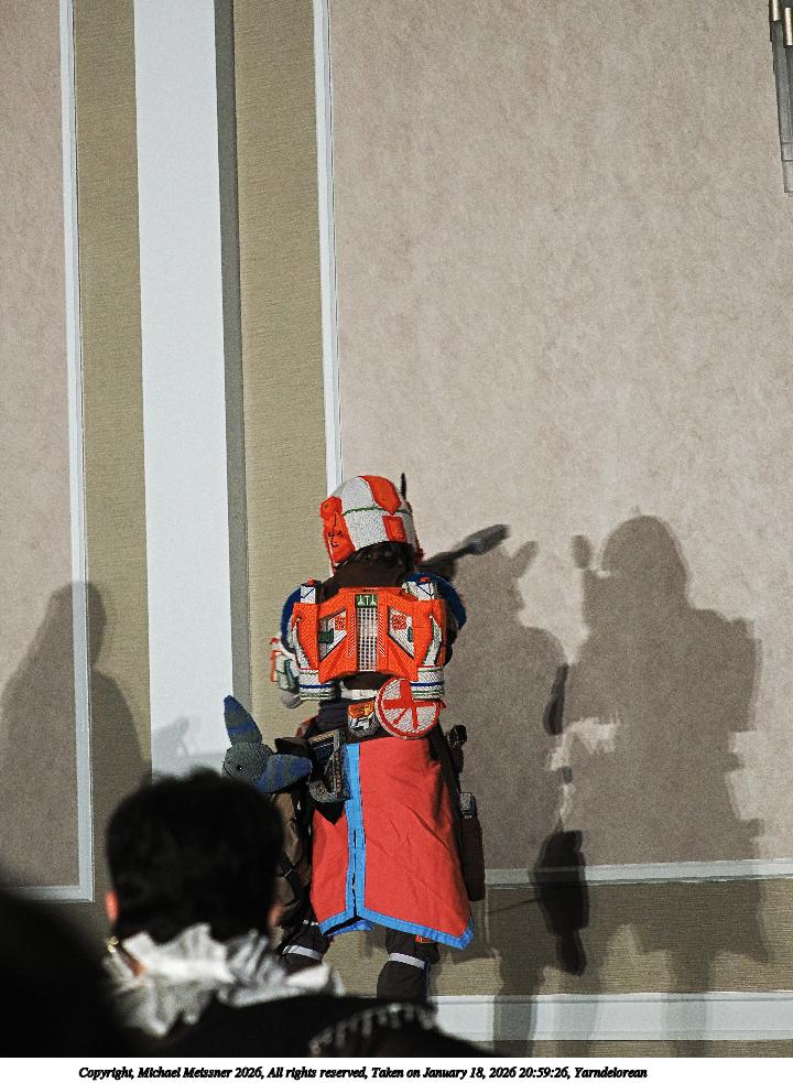 Picture #2: Cosplayer Thumb: 480x360, 44,177 bytes (44K) Small: 960x743, 101,948 bytes (100K), (html file) Large: 4800x3600, 3,246,214 bytes (3.1M), (html file) Copyright, Michael Meissner 2026, All rights reserved OM OM3 camera with OM 20mm f/1.4 lens f/1.8, ISO 200, flash, 1/100 sec, 20.0mm, auto mode, vivid color, matrix metering, IS Auto, face detection, anti-shock 35mm equivalent focal length 40.0mm Programs used: crop, raw therapee Taken by Michael Meissner on January 17, 2026 11:04:00 Last modified on January 25, 2026 at 02:15 |