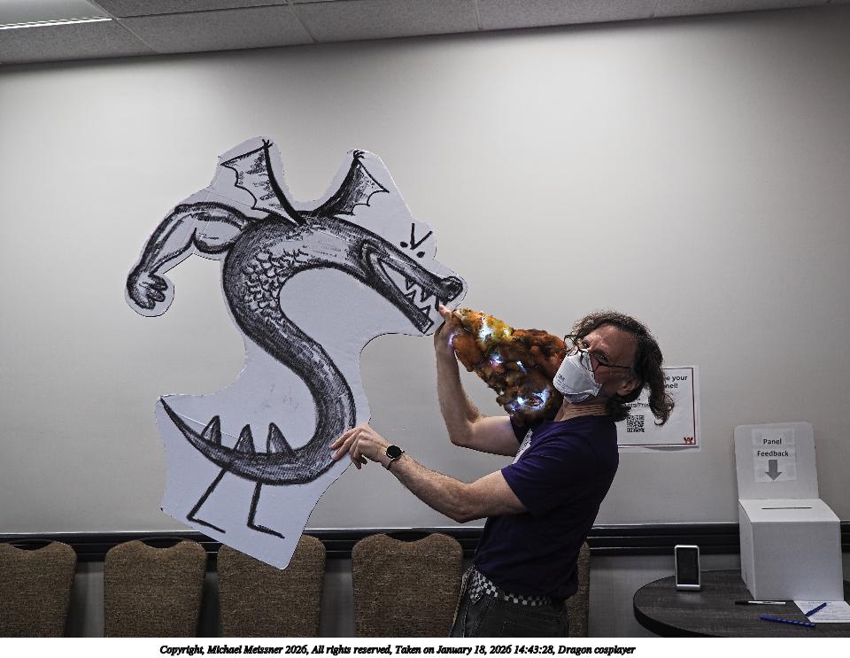 Picture #19: Dragon cosplayer Thumb: 480x360, 42,654 bytes (42K) Small: 960x743, 107,932 bytes (106K), (html file) Large: 4800x3600, 2,798,664 bytes (2.7M), (html file) Copyright, Michael Meissner 2026, All rights reserved Olympus E-M1-II camera with Olympus-m43 17mm f/1.2 lens f/1.8, ISO 200, flash, 1/125 sec, 17.0mm, auto mode, natural color, SHQ, matrix metering, continous focus, IS Auto, noise reduction auto, both eyes priority, face detection 35mm equivalent focal length 34.0mm Programs used: crop, raw therapee Taken by Michael Meissner on January 18, 2026 14:43:28 Last modified on January 25, 2026 at 03:15 |