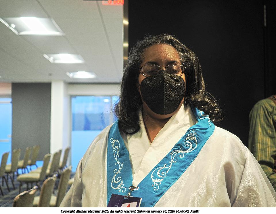 Picture #24: Jamila Thumb: 480x360, 48,779 bytes (48K) Small: 960x743, 123,892 bytes (121K), (html file) Large: 4800x3600, 9,214,581 bytes (8.8M), (html file) Copyright, Michael Meissner 2026, All rights reserved OM OM3 camera with OM 17mm-II f/1.8 lens f/1.8, ISO 250, 1/60 sec, 17.0mm, auto mode, vivid color, matrix metering, IS Auto, face detection, anti-shock 35mm equivalent focal length 34.0mm Programs used: crop, gimp, raw therapee Taken by Michael Meissner on January 18, 2026 16:06:40 Last modified on January 25, 2026 at 03:20 |