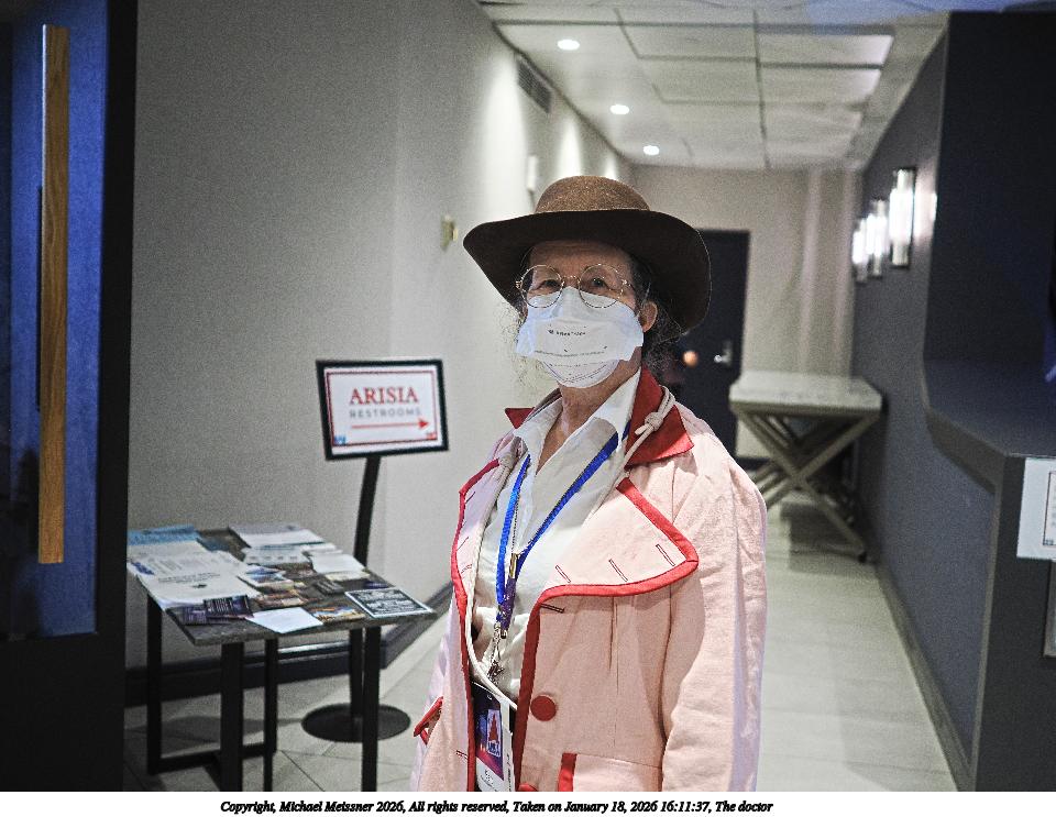 Picture #27: The doctor Thumb: 480x360, 48,321 bytes (48K) Small: 960x743, 129,556 bytes (127K), (html file) Large: 4800x3600, 4,692,243 bytes (4.5M), (html file) Copyright, Michael Meissner 2026, All rights reserved OM OM3 camera with OM 17mm-II f/1.8 lens f/1.8, ISO 1000, 1/60 sec, 17.0mm, auto mode, vivid color, matrix metering, IS Auto, face detection, anti-shock 35mm equivalent focal length 34.0mm Programs used: crop, raw therapee Taken by Michael Meissner on January 18, 2026 16:11:37 Last modified on January 25, 2026 at 03:22 |