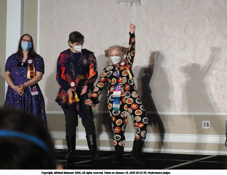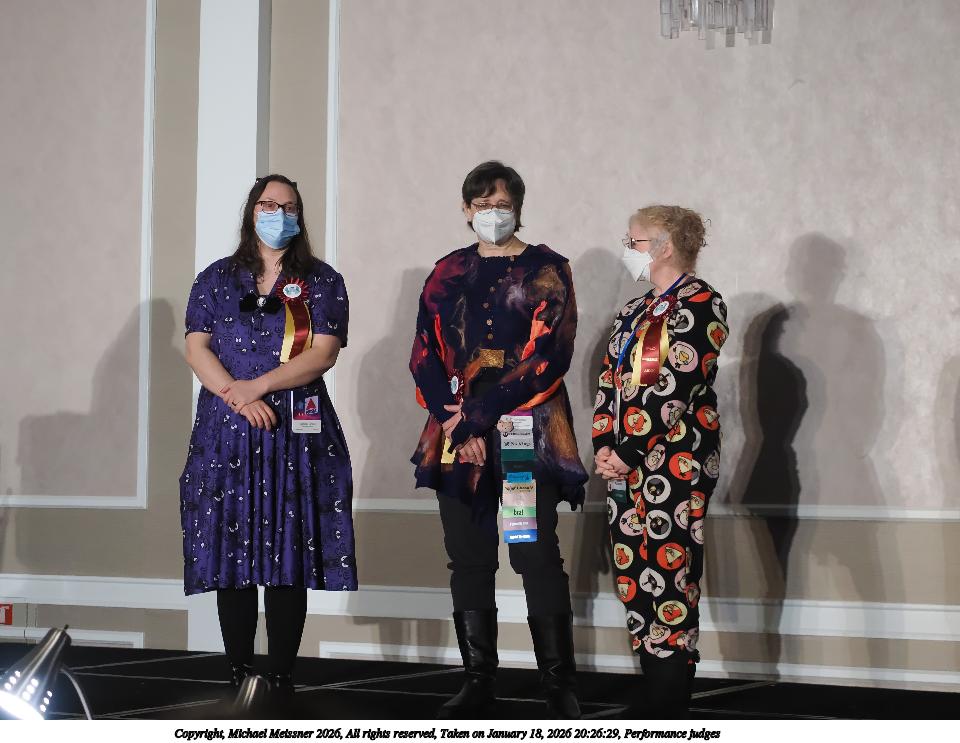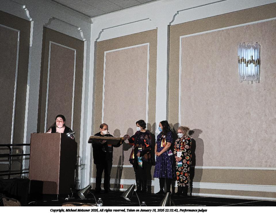 Picture #3: Performance judges Thumb: 480x360, 50,749 bytes (50K) Small: 960x743, 107,831 bytes (106K), (html file) Large: 4800x3600, 1,754,049 bytes (1.7M), (html file) Copyright, Michael Meissner 2026, All rights reserved OM OM3 camera with Olympus-m43 12-40mm f/2.8 lens f/2.8, ISO 5000, 1/125 sec, 38.0mm, auto mode, vivid color, matrix metering, IS Auto, face detection, subject human 35mm equivalent focal length 76.0mm Programs used: crop, raw therapee Taken by Michael Meissner on January 18, 2026 20:25:58 Last modified on January 25, 2026 at 15:31 |