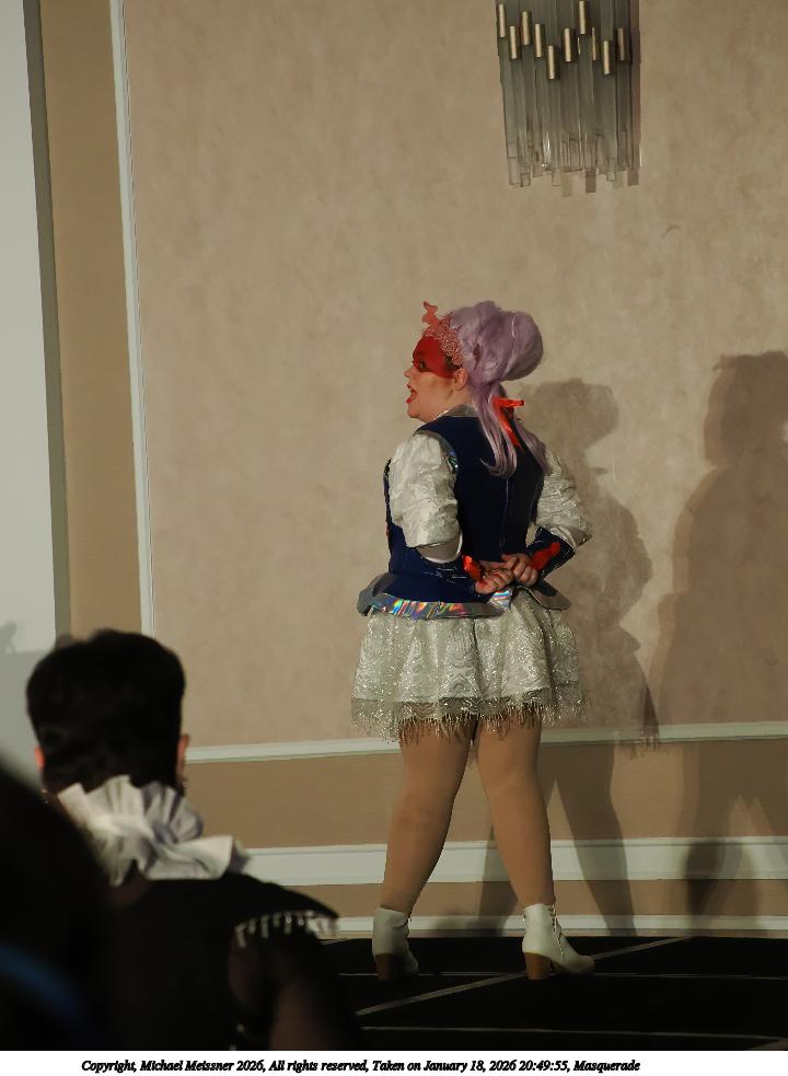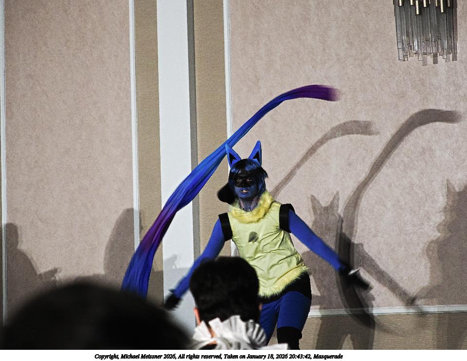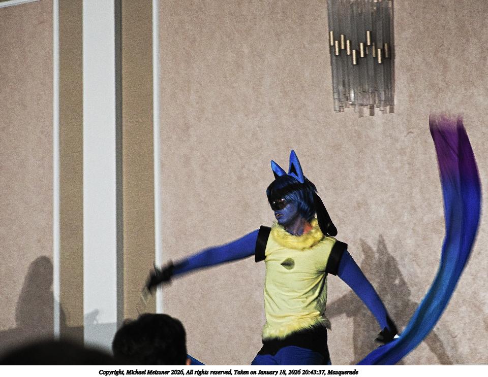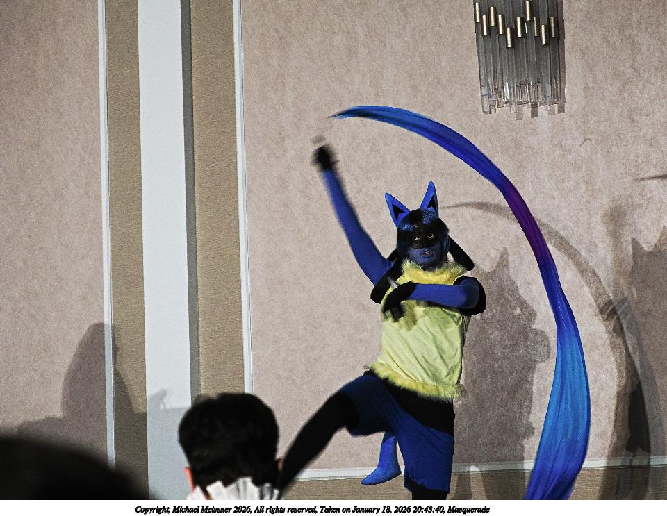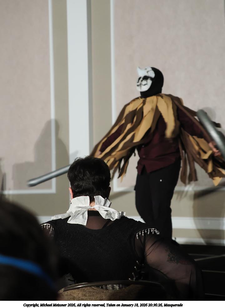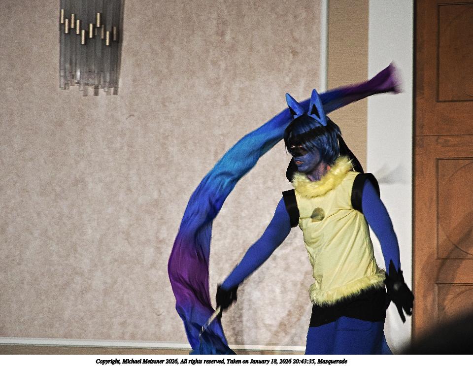 Picture #5: Masquerade #3 Thumb: 500x375, 40,124 bytes (40K) Small: 1000x773, 77,022 bytes (76K), (html file) Large: 4000x3000, 1,063,893 bytes (1.0M), (html file) Copyright, Michael Meissner 2026, All rights reserved OM OM1 camera with Olympus-m43 40-150mm f/2.8 lens f/3.2, ISO 4000, 1/200 sec, 95.0mm, auto mode, vivid color, matrix metering, continous focus, IS Auto, anti-shock 35mm equivalent focal length 190.0mm Programs used: crop, raw therapee Taken by Michael Meissner on January 18, 2026 20:29:12 Last modified on January 25, 2026 at 15:31 |