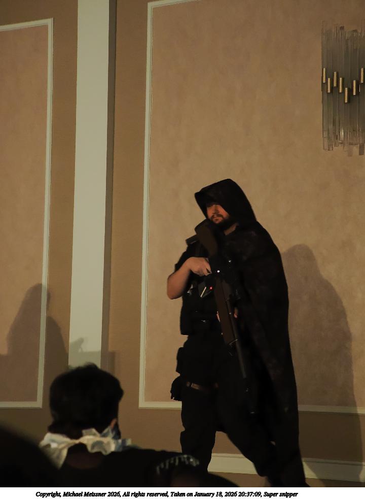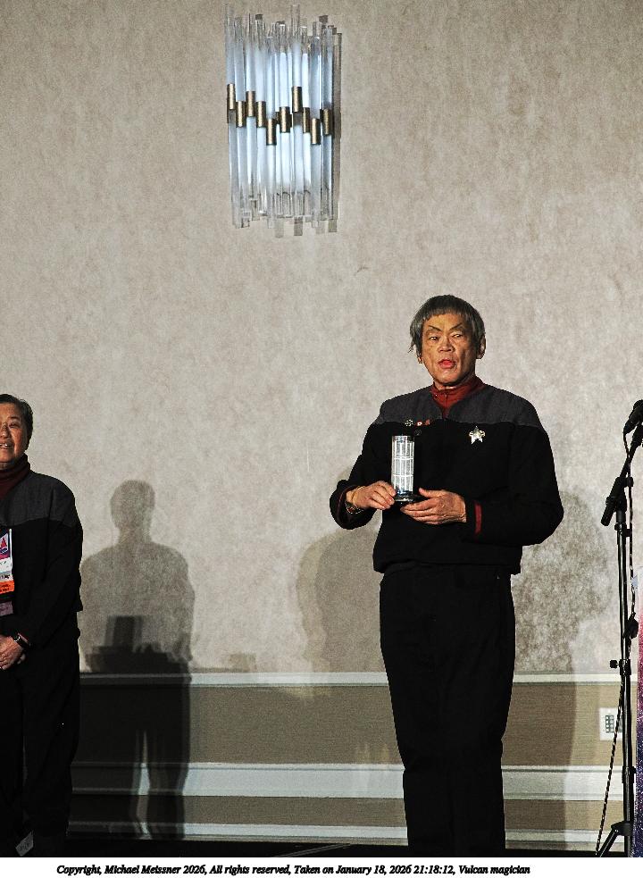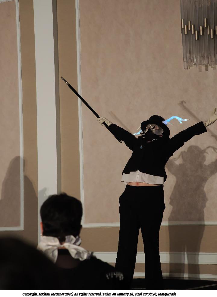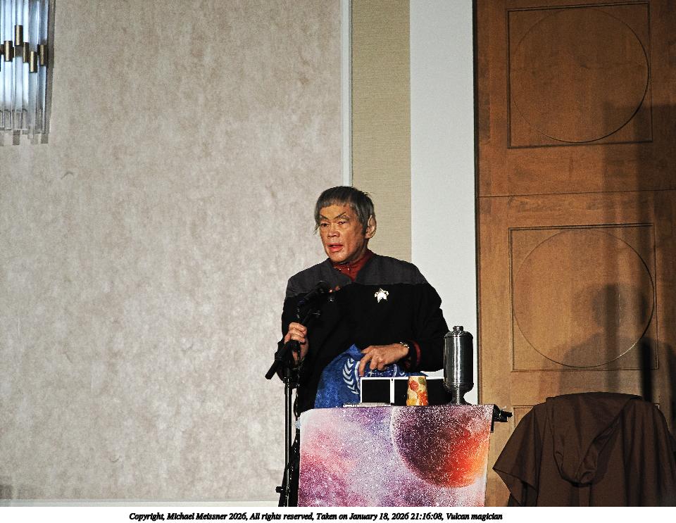 Picture #138: Vulcan magician Thumb: 480x360, 49,078 bytes (48K) Small: 960x743, 137,077 bytes (134K), (html file) Large: 4800x3600, 4,838,191 bytes (4.6M), (html file) Copyright, Michael Meissner 2026, All rights reserved OM OM1 camera with Olympus-m43 40-150mm f/2.8 lens f/2.8, ISO 2000, 1/80 sec, 40.0mm, auto mode, vivid color, matrix metering, continous focus, IS Auto, anti-shock 35mm equivalent focal length 80.0mm Programs used: crop, raw therapee Taken by Michael Meissner on January 18, 2026 21:16:08 Last modified on January 25, 2026 at 18:50 |