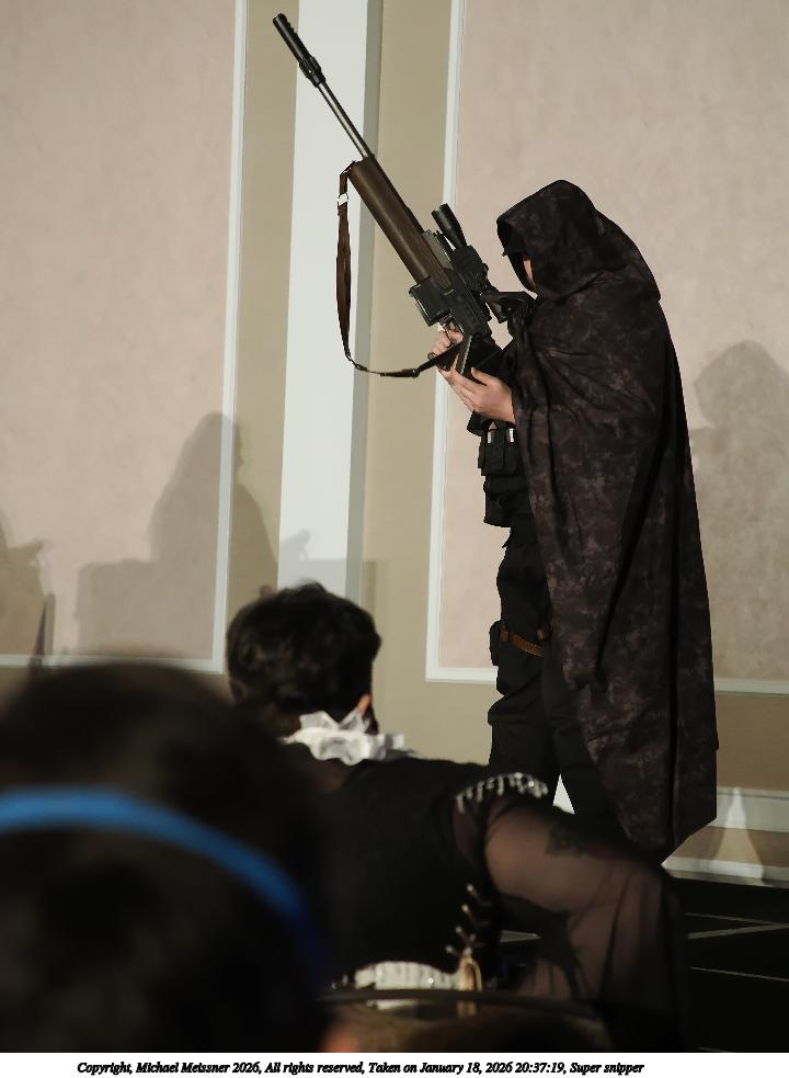 Picture #19: Super snipper Thumb: 360x480, 38,576 bytes (38K) Small: 720x983, 69,113 bytes (68K), (html file) Large: 3600x4800, 1,581,933 bytes (1.5M), (html file) Copyright, Michael Meissner 2026, All rights reserved OM OM1 camera with Olympus-m43 40-150mm f/2.8 lens f/2.8, ISO 10000, 1/80 sec, 40.0mm, auto mode, vivid color, matrix metering, continous focus, IS Auto, anti-shock 35mm equivalent focal length 80.0mm Programs used: crop, raw therapee, rotate left Taken by Michael Meissner on January 18, 2026 20:37:09 Last modified on January 25, 2026 at 15:35 |