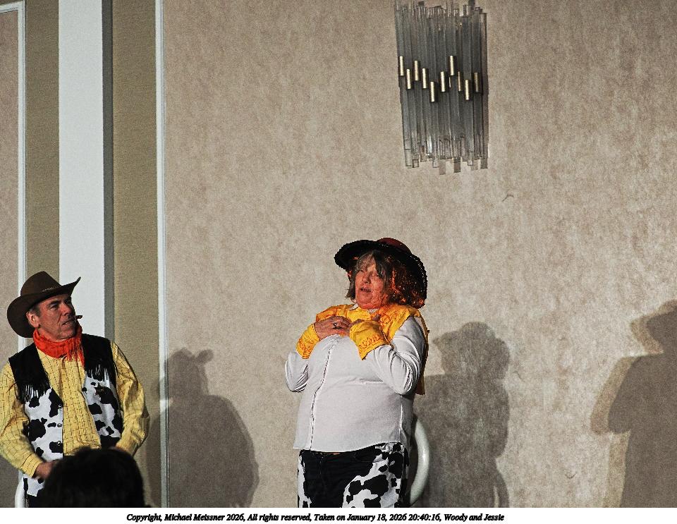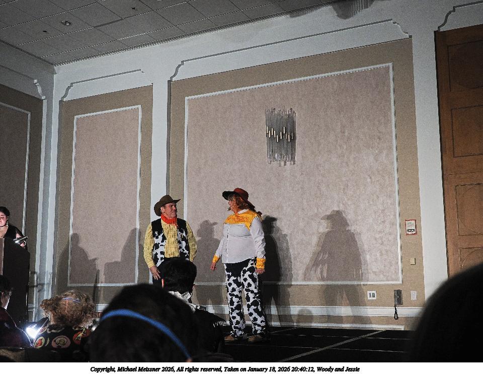 Picture #31: Woody and Jessie Thumb: 480x360, 52,682 bytes (52K) Small: 960x743, 162,560 bytes (159K), (html file) Large: 4800x3600, 6,096,571 bytes (5.8M), (html file) Copyright, Michael Meissner 2026, All rights reserved OM OM1 camera with Olympus-m43 40-150mm f/2.8 lens f/2.8, ISO 1600, 1/80 sec, 40.0mm, auto mode, vivid color, matrix metering, continous focus, IS Auto, anti-shock 35mm equivalent focal length 80.0mm Programs used: crop, raw therapee Taken by Michael Meissner on January 18, 2026 20:40:05 Last modified on January 25, 2026 at 15:38 |
