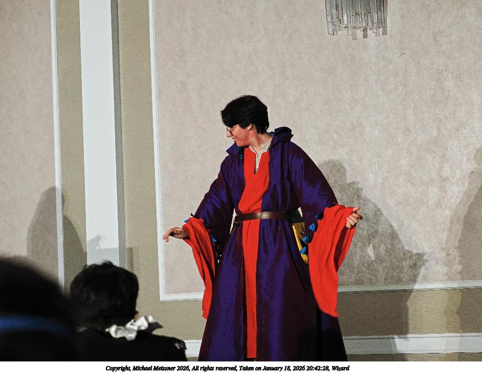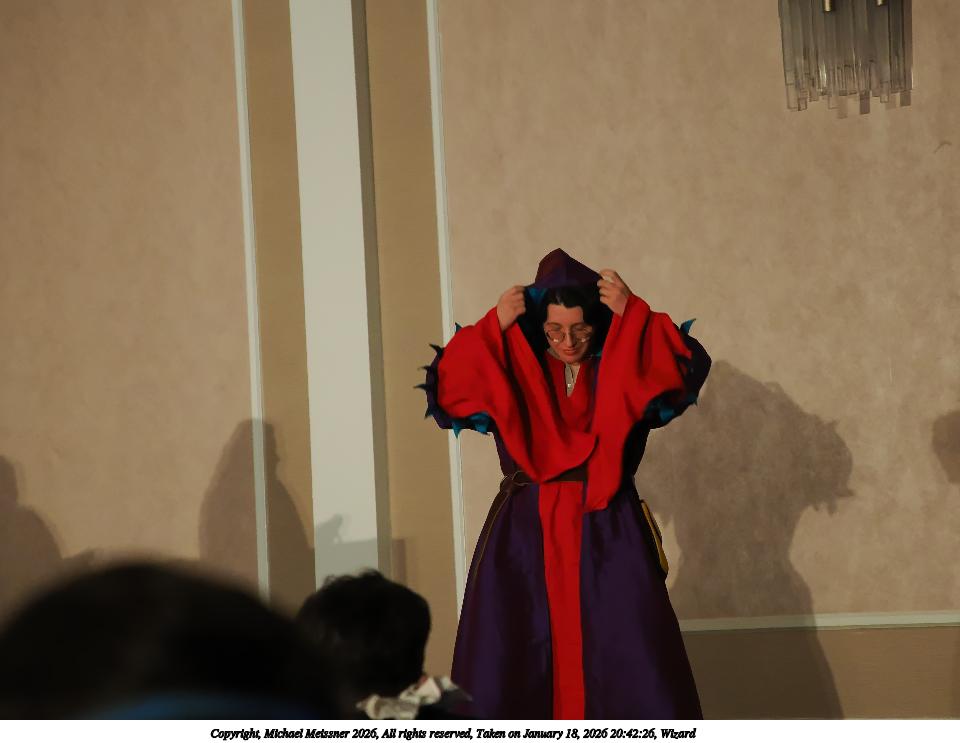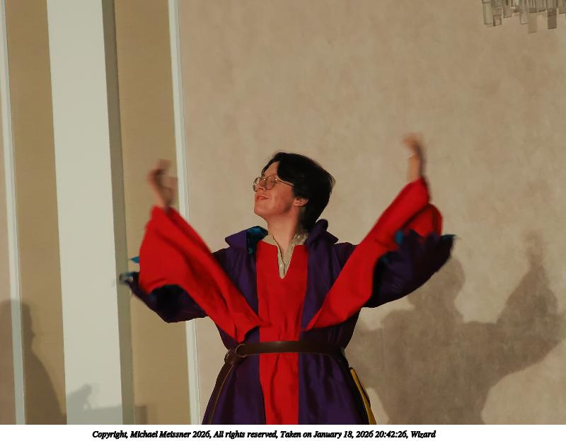 Picture #39: Wizard #2 Thumb: 400x300, 36,112 bytes (36K) Small: 800x623, 61,135 bytes (60K), (html file) Large: 3200x2400, 710,528 bytes (694K), (html file) Copyright, Michael Meissner 2026, All rights reserved OM OM1 camera with Olympus-m43 40-150mm f/2.8 lens f/2.8, ISO 6400, 1/80 sec, 40.0mm, auto mode, vivid color, matrix metering, continous focus, IS Auto, anti-shock 35mm equivalent focal length 80.0mm Programs used: crop, raw therapee Taken by Michael Meissner on January 18, 2026 20:42:26 Last modified on January 25, 2026 at 15:41 |