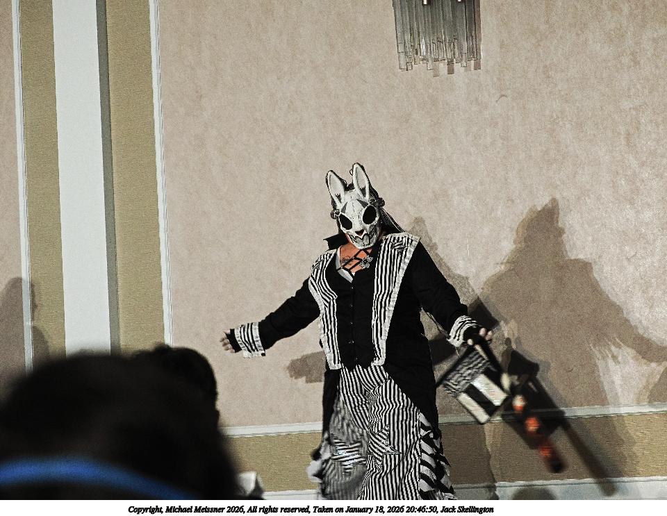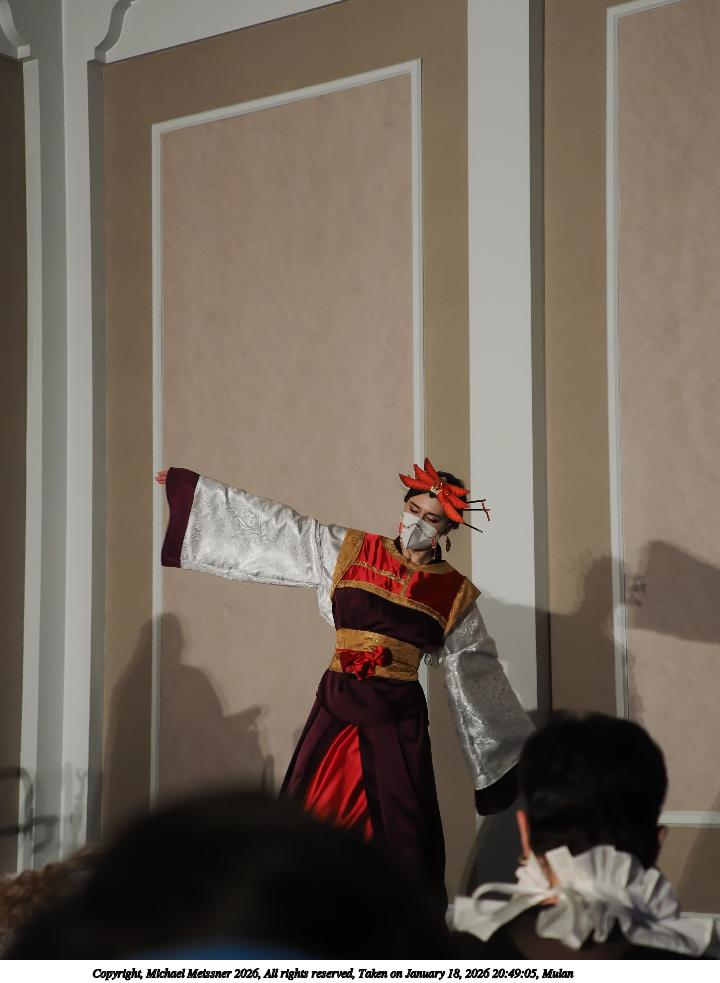 Picture #6: Masquerade #4 Thumb: 480x360, 44,619 bytes (44K) Small: 960x743, 93,511 bytes (92K), (html file) Large: 4800x3600, 1,742,270 bytes (1.7M), (html file) Copyright, Michael Meissner 2026, All rights reserved OM OM1 camera with Olympus-m43 40-150mm f/2.8 lens f/2.8, ISO 3200, 1/200 sec, 95.0mm, auto mode, vivid color, matrix metering, continous focus, IS Auto, anti-shock 35mm equivalent focal length 190.0mm Programs used: crop, raw therapee Taken by Michael Meissner on January 18, 2026 20:29:16 Last modified on January 25, 2026 at 15:31 |