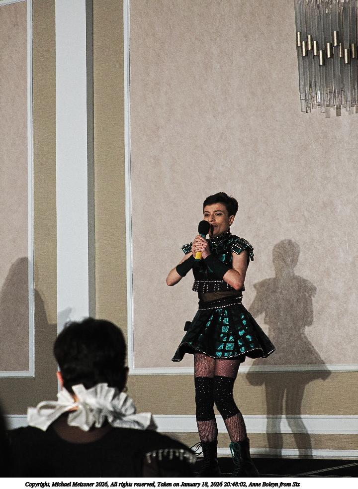 Picture #28: Anne Boleyn from Six Thumb: 480x360, 47,947 bytes (47K) Small: 960x743, 120,954 bytes (119K), (html file) Large: 4800x3600, 8,879,751 bytes (8.5M), (html file) Copyright, Michael Meissner 2026, All rights reserved OM OM3 camera with OM 17mm-II f/1.8 lens f/1.8, ISO 320, 1/60 sec, 17.0mm, auto mode, vivid color, matrix metering, IS Auto, face detection, anti-shock 35mm equivalent focal length 34.0mm Programs used: crop, gimp, raw therapee Taken by Michael Meissner on January 18, 2026 17:20:08 Last modified on January 25, 2026 at 03:24 |