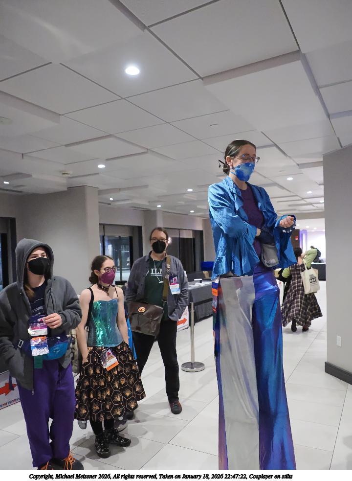 Picture #29: Cosplayer on stilts Thumb: 360x480, 51,092 bytes (50K) Small: 720x983, 111,433 bytes (109K), (html file) Large: 3600x4800, 2,063,915 bytes (2.0M), (html file) Copyright, Michael Meissner 2026, All rights reserved OM OM3 camera with Olympus-m43 12-40mm f/2.8 lens f/2.8, ISO 12800, 1/125 sec, 12.0mm, auto mode, vivid color, matrix metering, IS Auto, face detection, subject human 35mm equivalent focal length 24.0mm Programs used: crop, raw therapee, rotate left Taken by Michael Meissner on January 18, 2026 22:47:22 Last modified on January 25, 2026 at 19:04 |