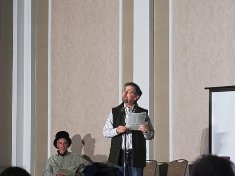 Picture #11: Dramatic readings from the Ig Nobel prizes #8 Thumb: 480x360, 45,969 bytes (45K) Small: 960x743, 122,436 bytes (120K), (html file) Large: 4800x3600, 9,367,762 bytes (8.9M), (html file) Copyright, Michael Meissner 2026, All rights reserved OM OM1 camera with Olympus-m43 12-40mm f/2.8 lens f/2.8, ISO 1600, 1/125 sec, 40.0mm, auto mode, vivid color, matrix metering, IS Auto, face detection, anti-shock 35mm equivalent focal length 80.0mm Programs used: crop, gimp, raw therapee Taken by Michael Meissner on January 17, 2026 15:23:46 Last modified on January 25, 2026 at 02:40 |