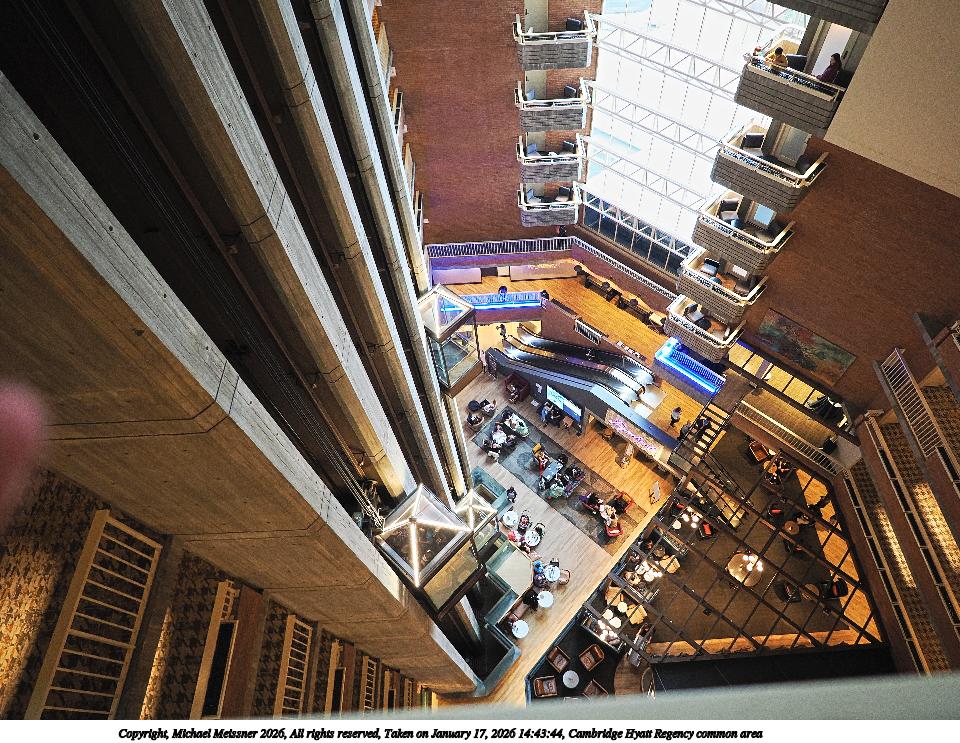Picture #1: Cambridge Hyatt Regency common area 960x743, 220,015 bytes (215K), (html file) Copyright, Michael Meissner 2026, All rights reserved OM OM1 camera with Panasonic-Leica 9mm f/1.7 lens f/1.8, ISO 1000, 1/60 sec, 9.0mm, auto mode, vivid color, matrix metering, IS Auto, anti-shock 35mm equivalent focal length 18.0mm Programs used: crop, raw therapee Taken by Michael Meissner on January 17, 2026 14:43:44 Last modified on January 22, 2026 at 11:20 |