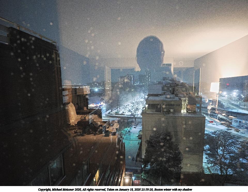 Picture #1: Boston winter with my shadow 960x743, 155,556 bytes (152K), (html file) Copyright, Michael Meissner 2026, All rights reserved OM OM3 camera with Panasonic-Leica 9mm f/1.7 lens f/1.8, ISO 2500, 1/60 sec, 9.0mm, auto mode, vivid color, matrix metering, IS Auto, face detection, anti-shock 35mm equivalent focal length 18.0mm Programs used: crop, raw therapee Taken by Michael Meissner on January 18, 2026 23:59:20 Last modified on January 22, 2026 at 11:34 |