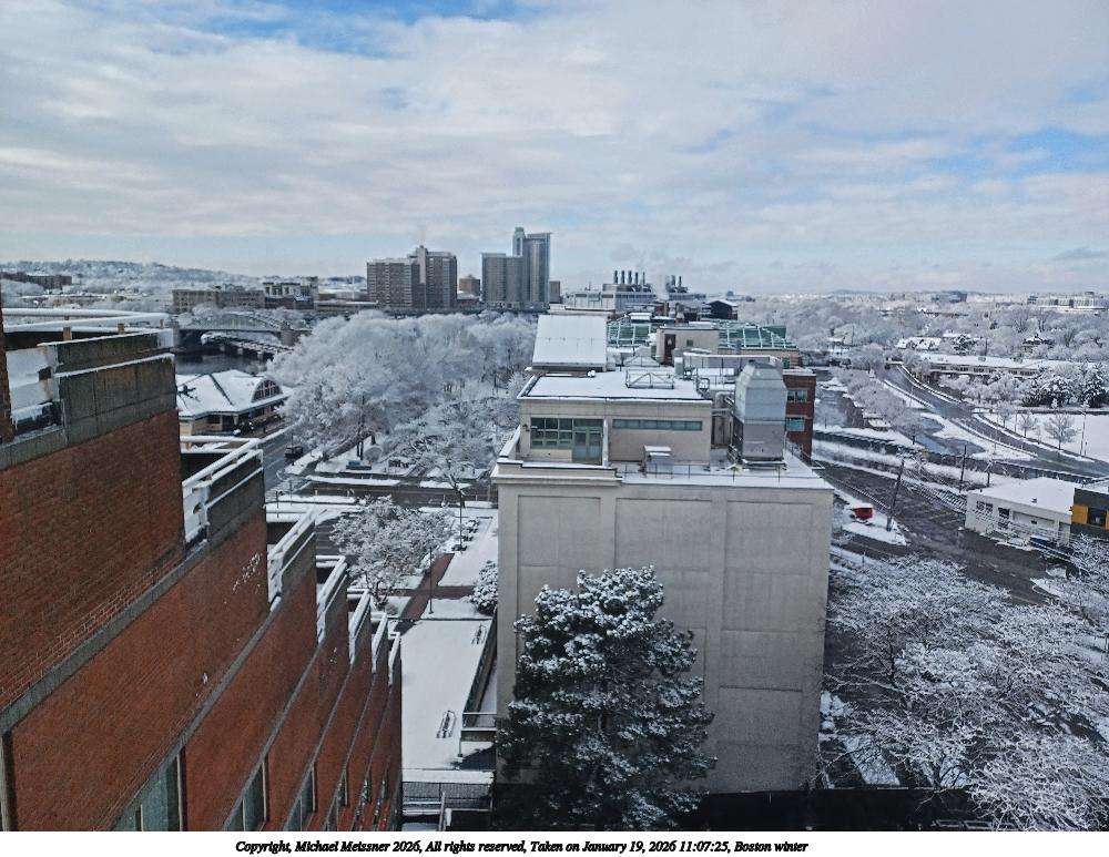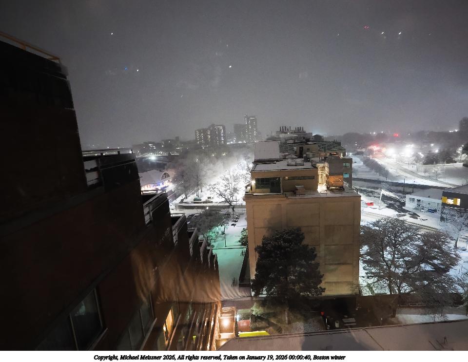 Picture #4: Boston winter #3 1000x773, 144,895 bytes (142K), (html file) Copyright, Michael Meissner 2026, All rights reserved Samsung A32 5G phone f/1.8, ISO 32, 1/347 sec, 4.6mm, auto mode, spot metering 35mm equivalent focal length 25.0mm Programs used: raw therapee Taken by Michael Meissner on January 19, 2026 11:07:25 Last modified on January 22, 2026 at 11:29 |