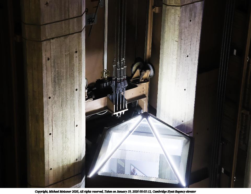Picture #3: Cambridge Hyatt Regency elevator #2 960x743, 108,632 bytes (107K), (html file) Copyright, Michael Meissner 2026, All rights reserved OM OM1 camera with Olympus-m43 40-150mm f/2.8 lens f/2.8, ISO 5000, 1/100 sec, 48.0mm, auto mode, vivid color, matrix metering, continous focus, IS Auto, anti-shock 35mm equivalent focal length 96.0mm Programs used: crop, raw therapee Taken by Michael Meissner on January 19, 2026 00:05:12 Last modified on January 22, 2026 at 11:29 |